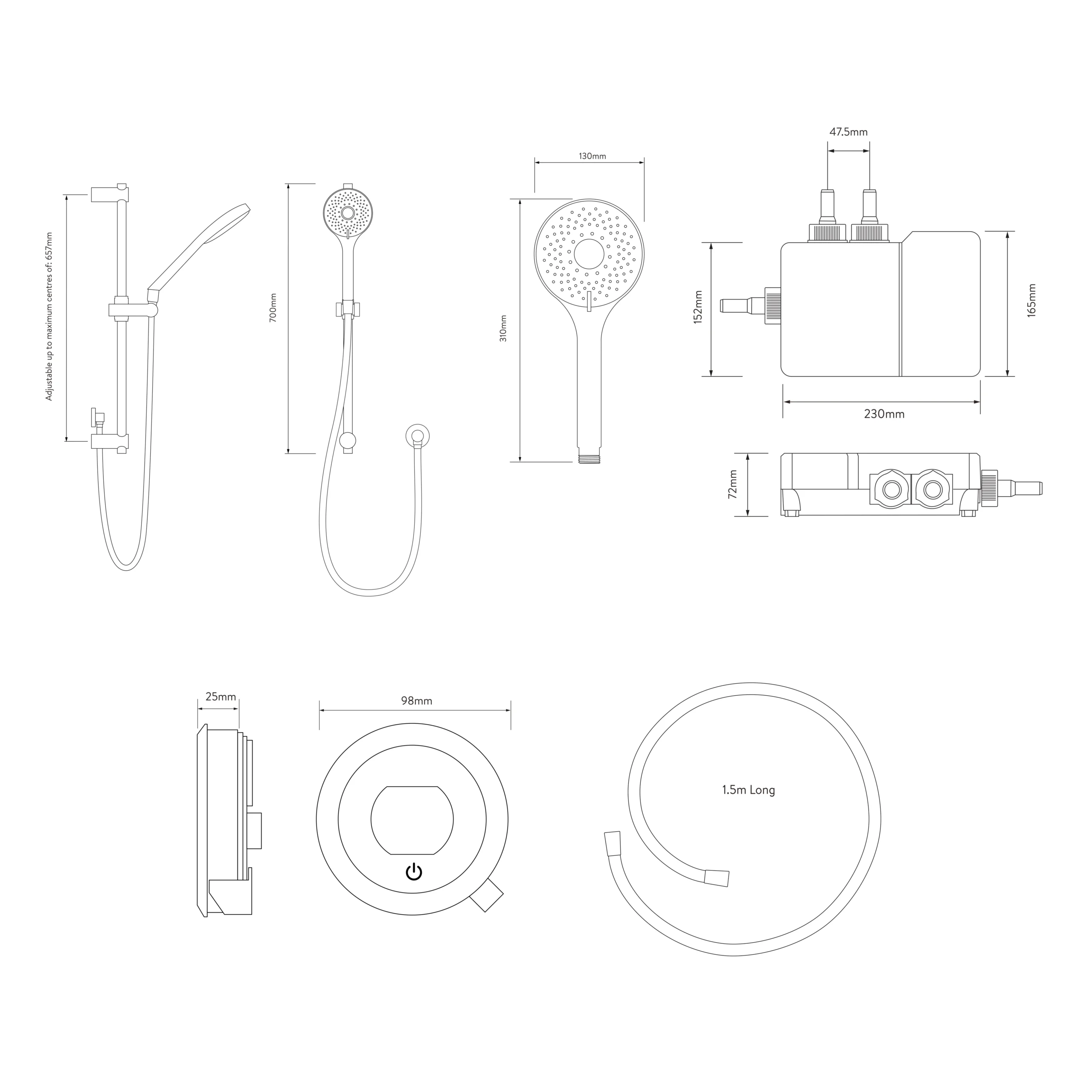 - Included: 130mm adjustable head, riser rail, Optic Q Smart controller, push button holder, gel hanger, 1.5m hose, SmartValveâ„¢, fixtures and fittings