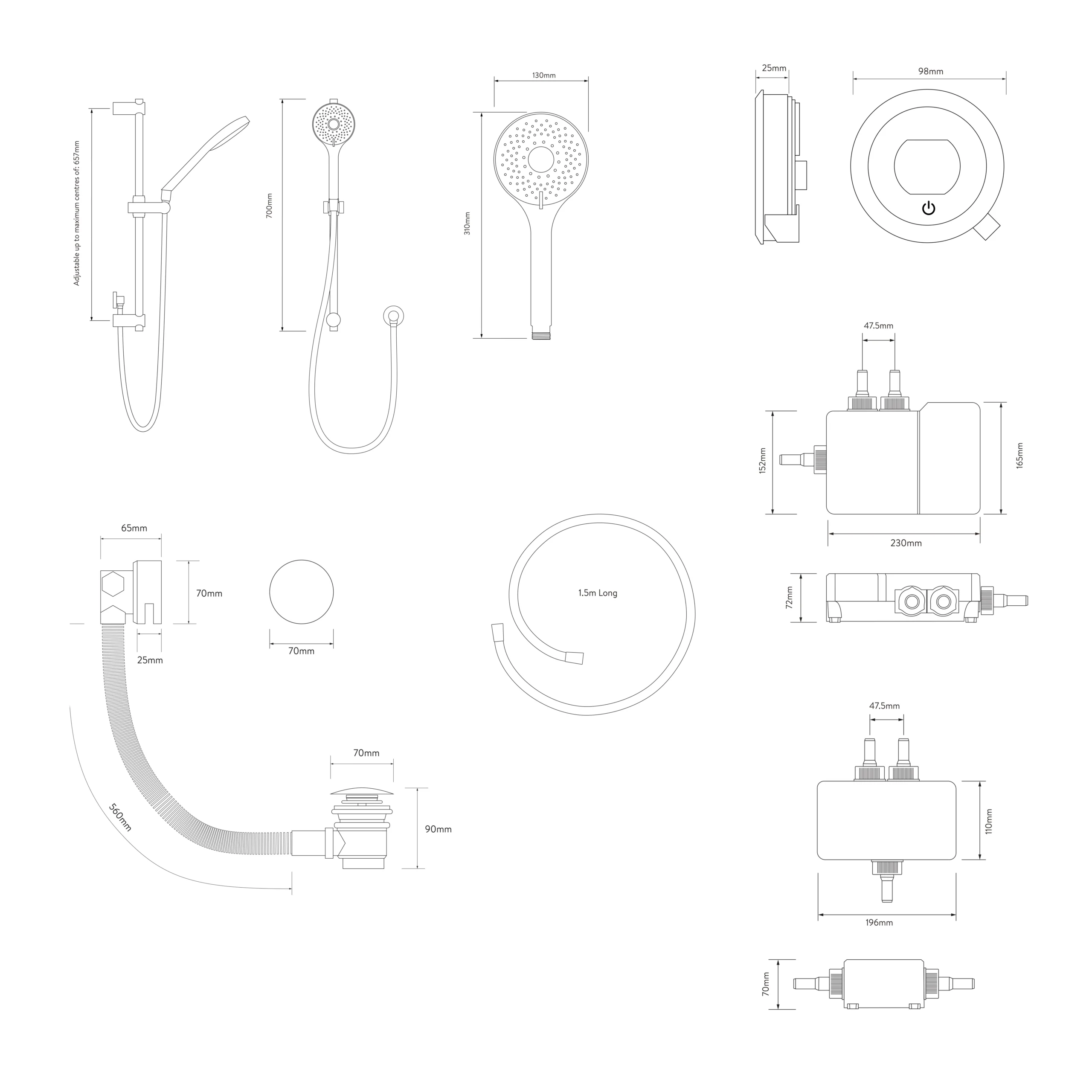 - Comes with – 130mm adjustable head, riser rail, Optic Q Smart controller, push button holder, gel hanger, 1.5m hose, bath overflow filler, Divert SmartValve™, fixtures and fittings