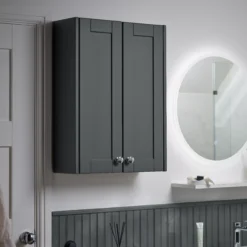 Ashford Matt Dusty Grey Shaker Double Wall Cabinet With 2 Mirror Doors (W)595mm (H)720mm