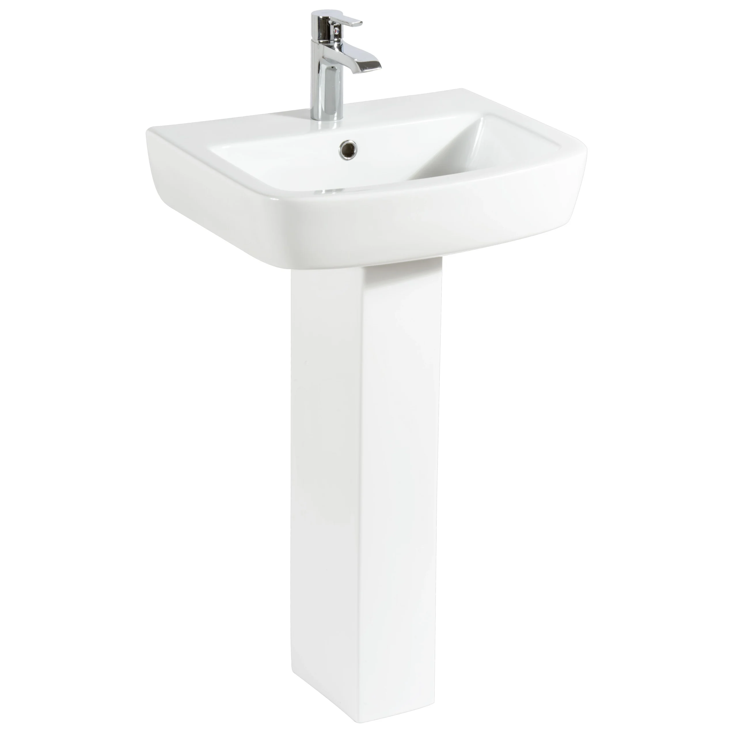 This vitreous china rectangular full pedestal basin from Cooke and Lewis’ Fabienne range has a single tap hole ready for you to pick the mixer tap that suits you.