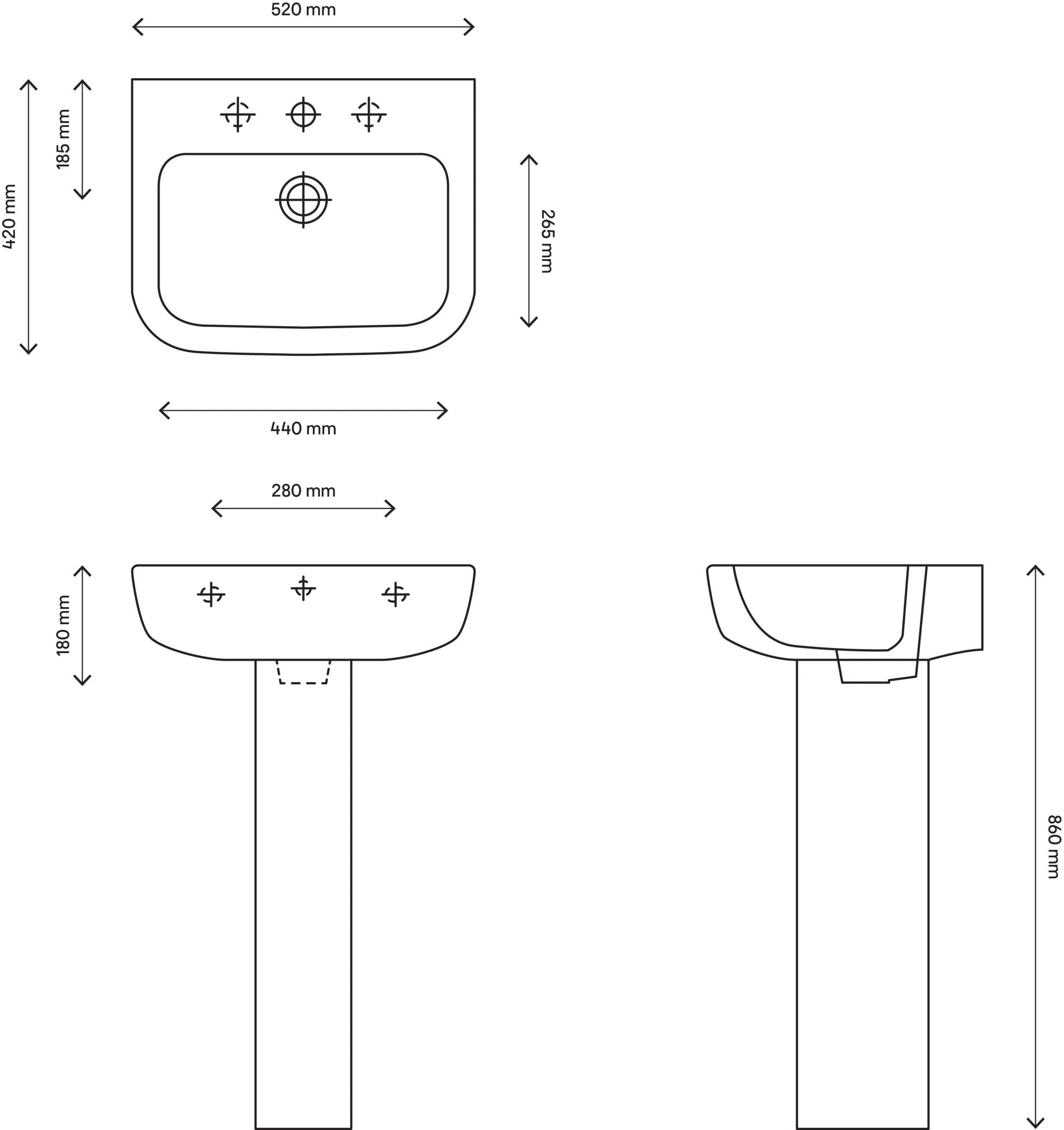 | Basin type | Full pedestal |
