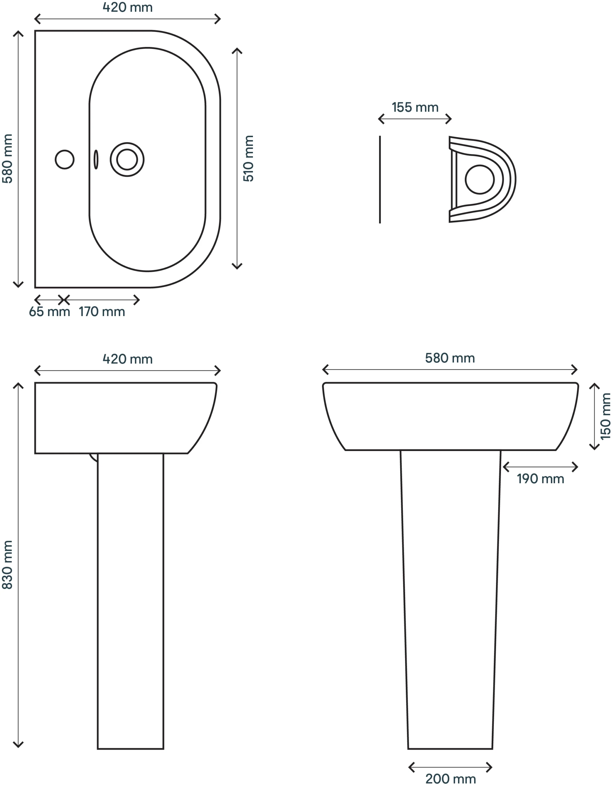 | Basin type | Full pedestal |