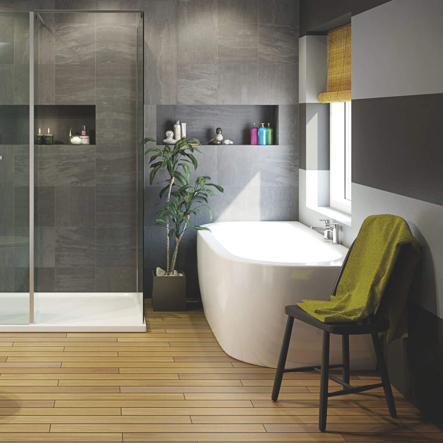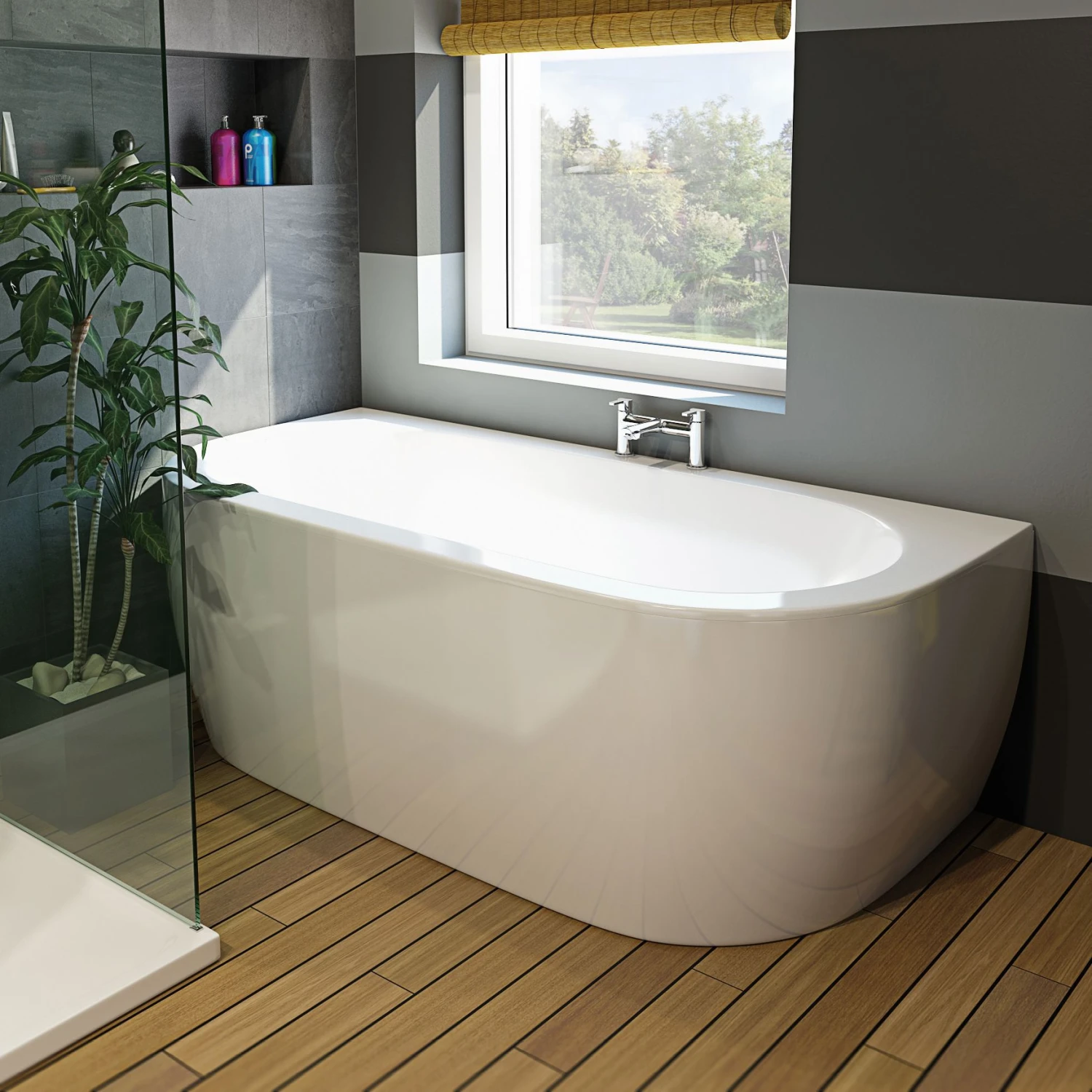 The Helena twin ended curved bath from Cooke & Lewis has a. It’s designed so you can choose where to place your bath taps and holds 220L litres of water. Compatible with square bath waste, and is compatible with wellness home spa systems.