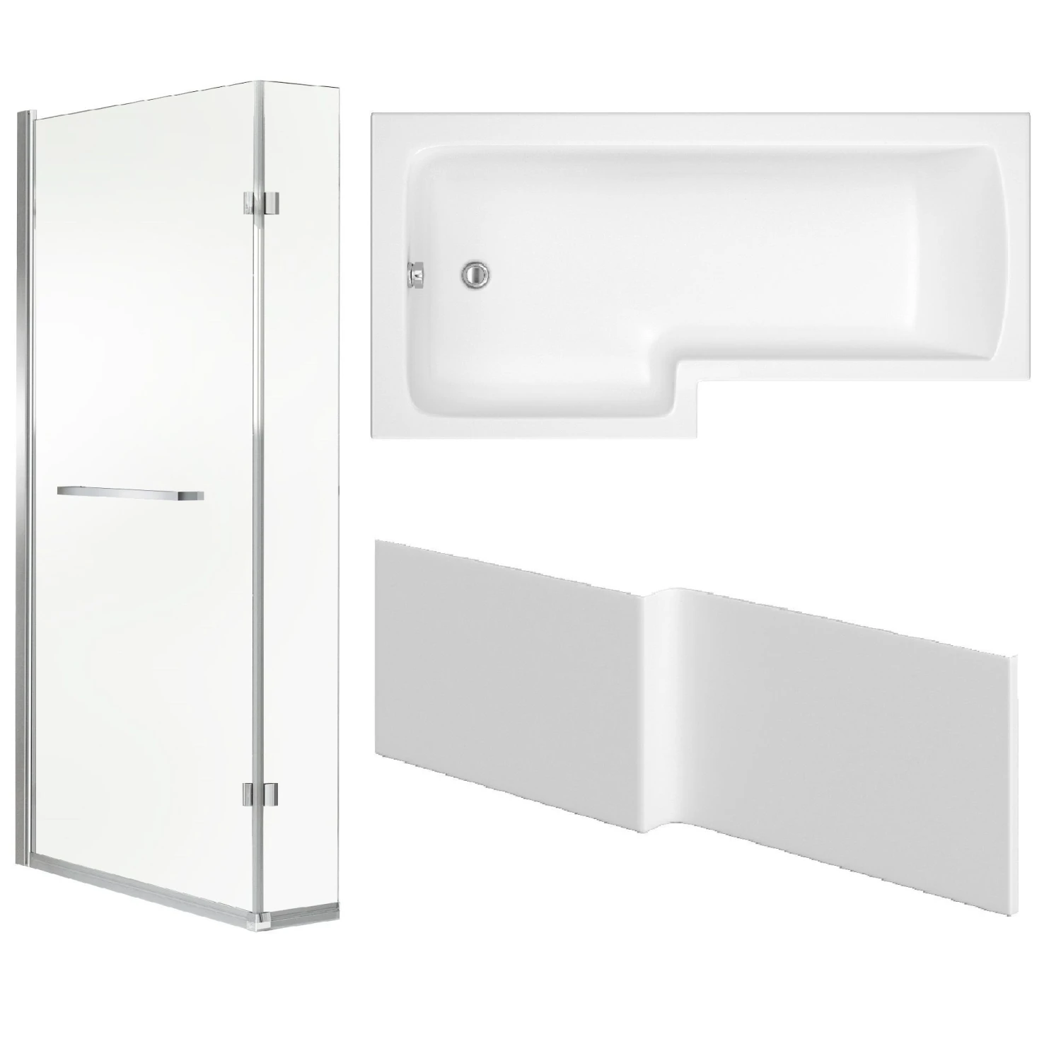 - The bath screen includes a handy chrome towel rail