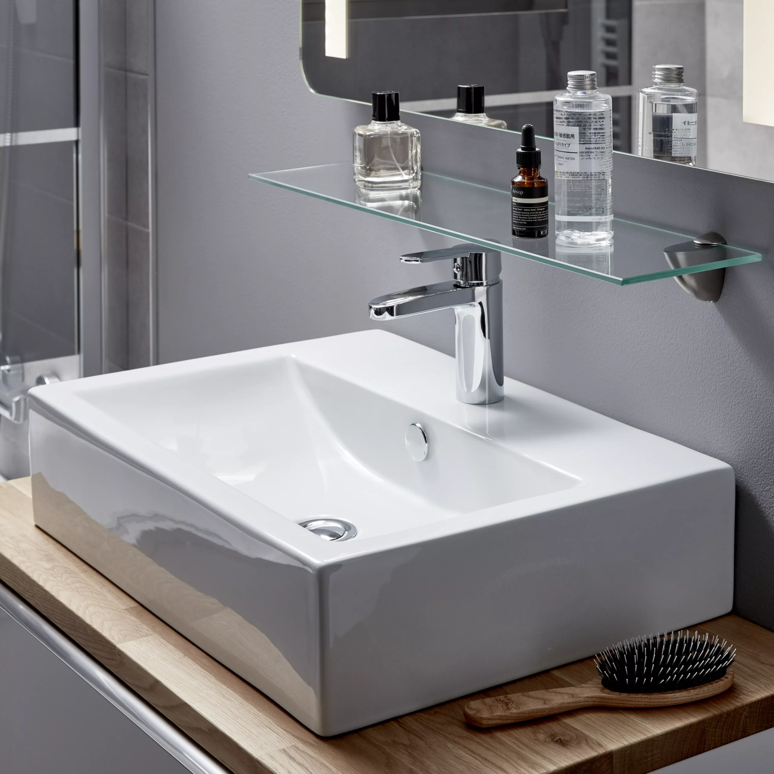 This ceramic countertop basin from Cooke and Lewis’ Albena range has a single tap hole ready for you to pick the mixer tap that suits you.