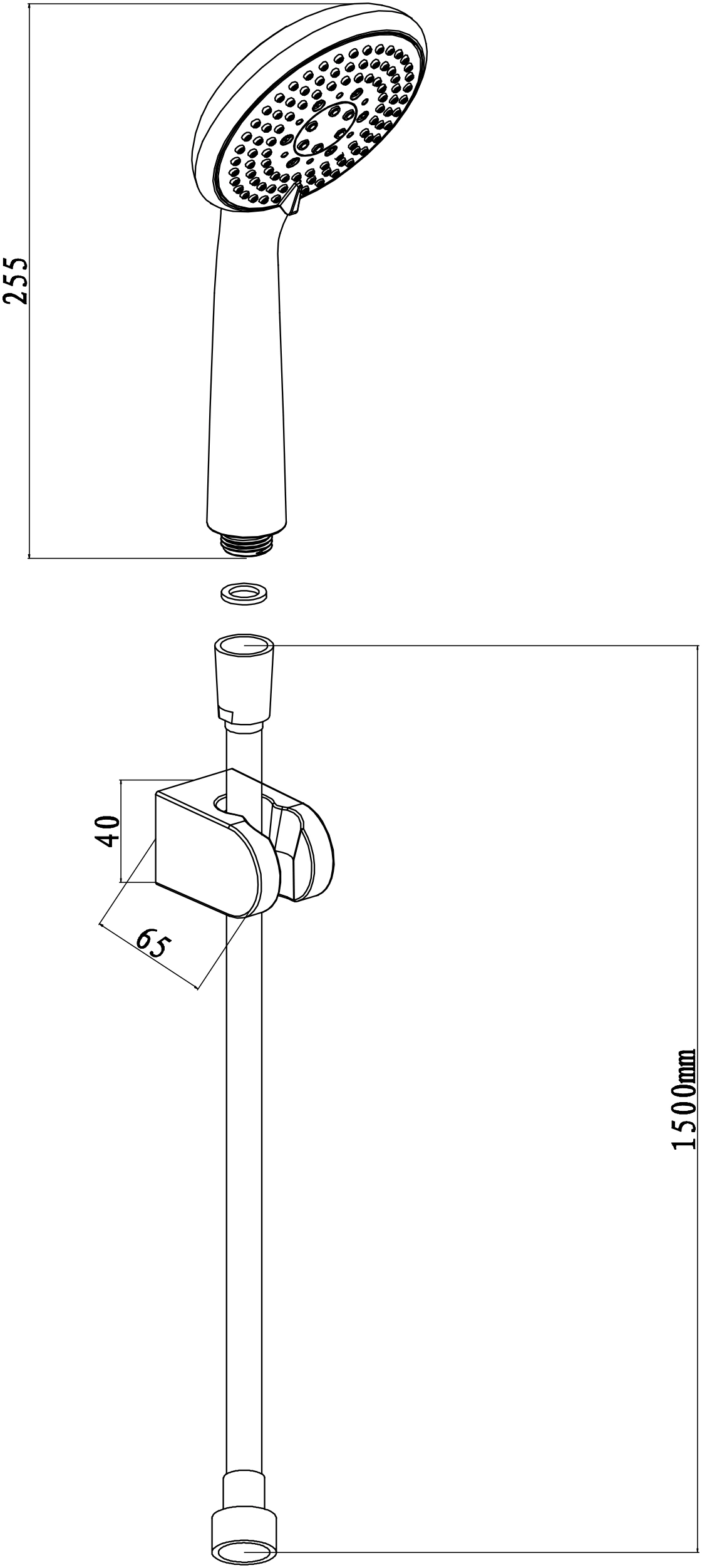 - 1x shower head, 1x shower holder, 1x hose, 1x fixing kit and 1x instructions manual