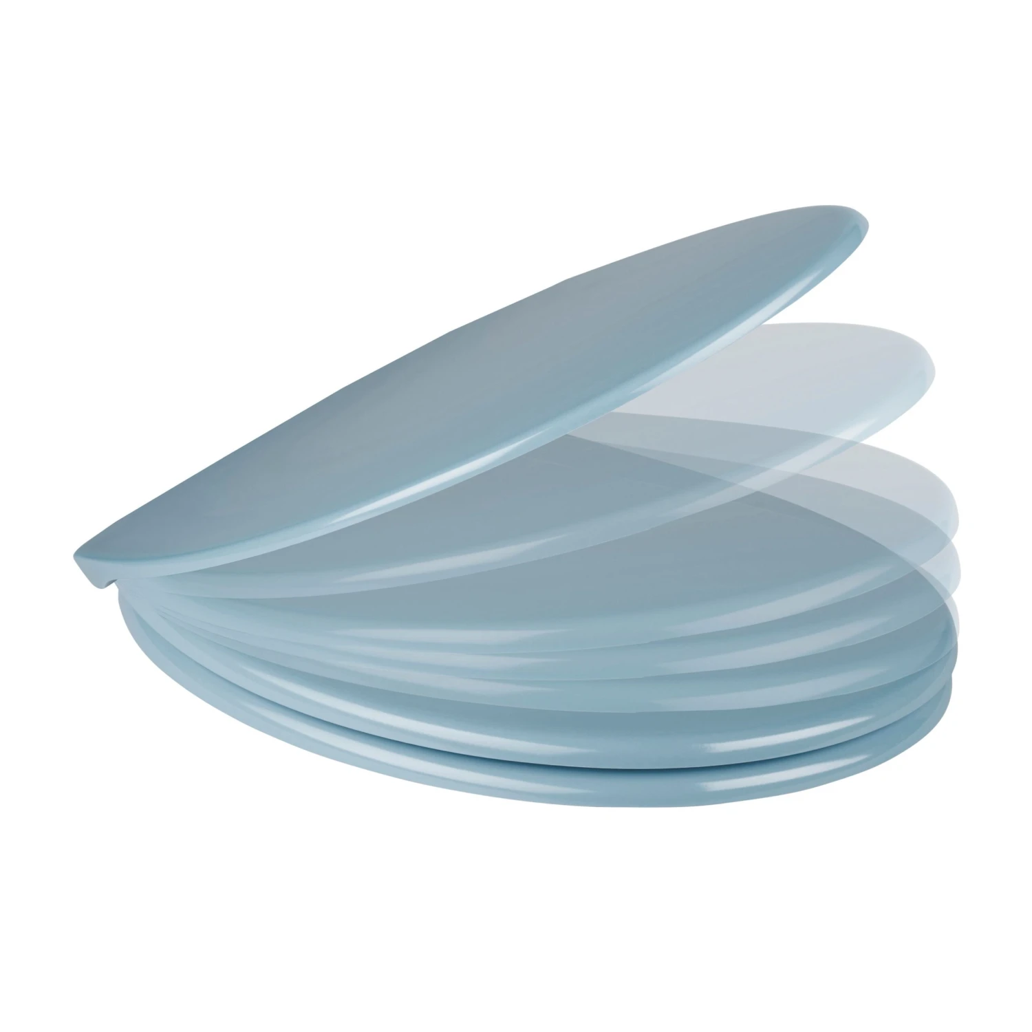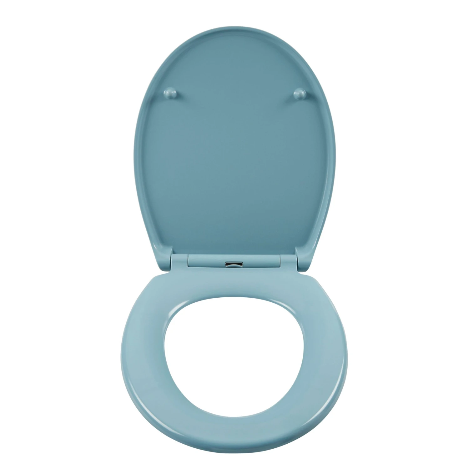 This GoodHome Diani blue toilet seat features a soft close function, meaning that it will close slowly and quietly when put down. The seat is made from thermoplastic.