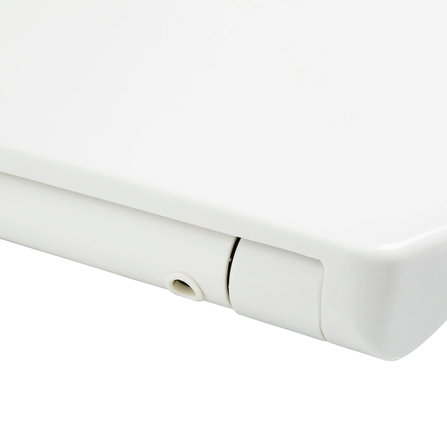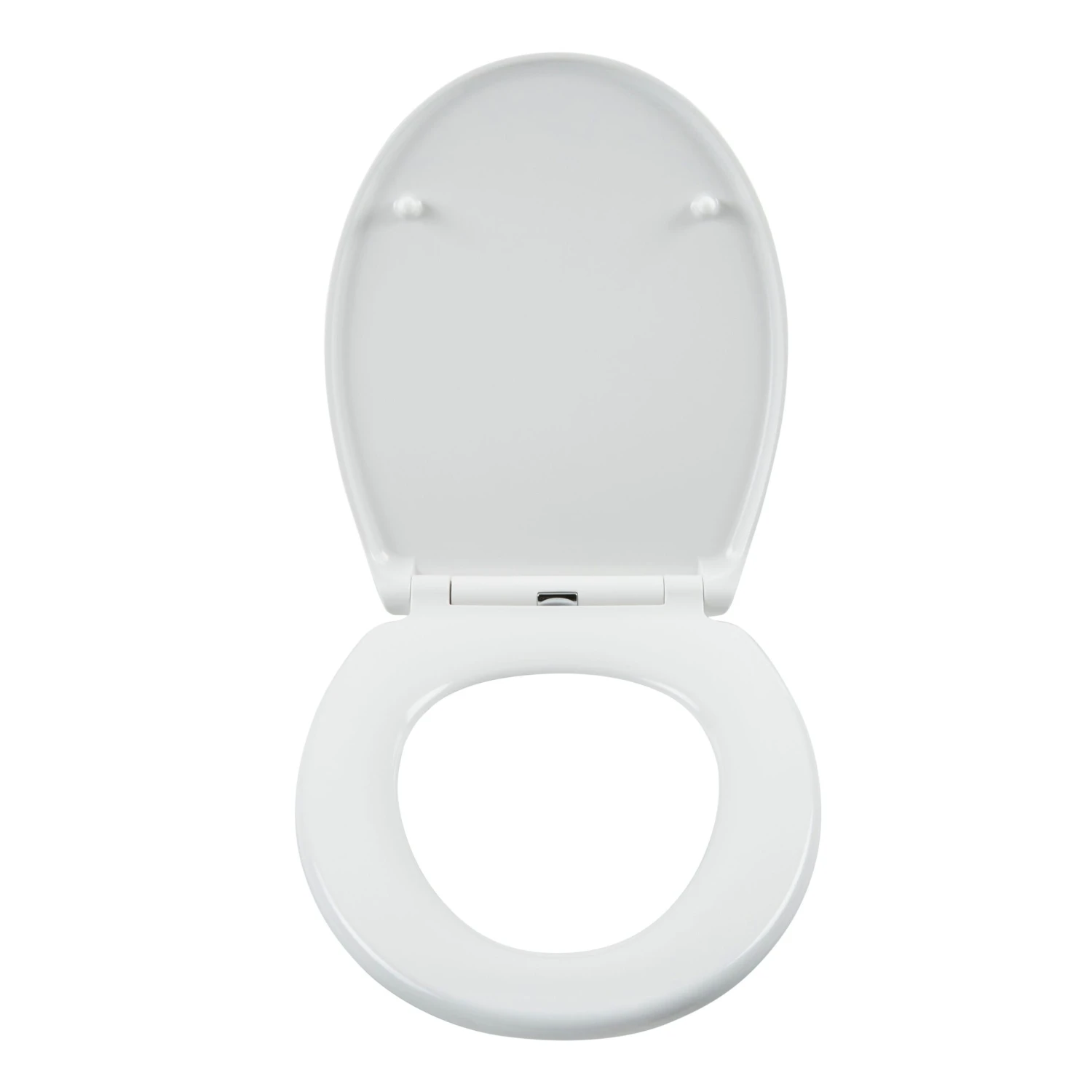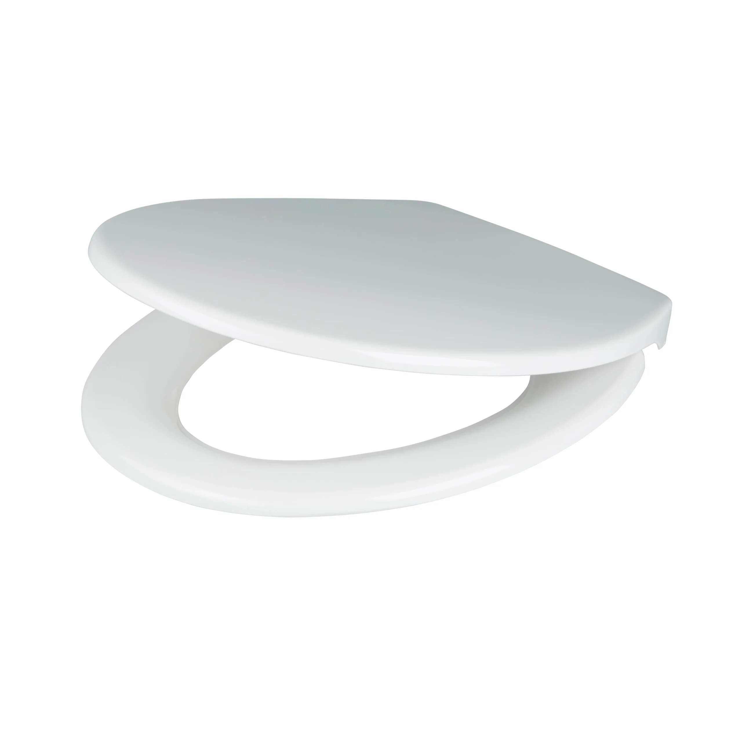 This GoodHome Diani white toilet seat features a soft close function, meaning that it will close slowly and quietly when put down. The seat is made from thermoplastic.
