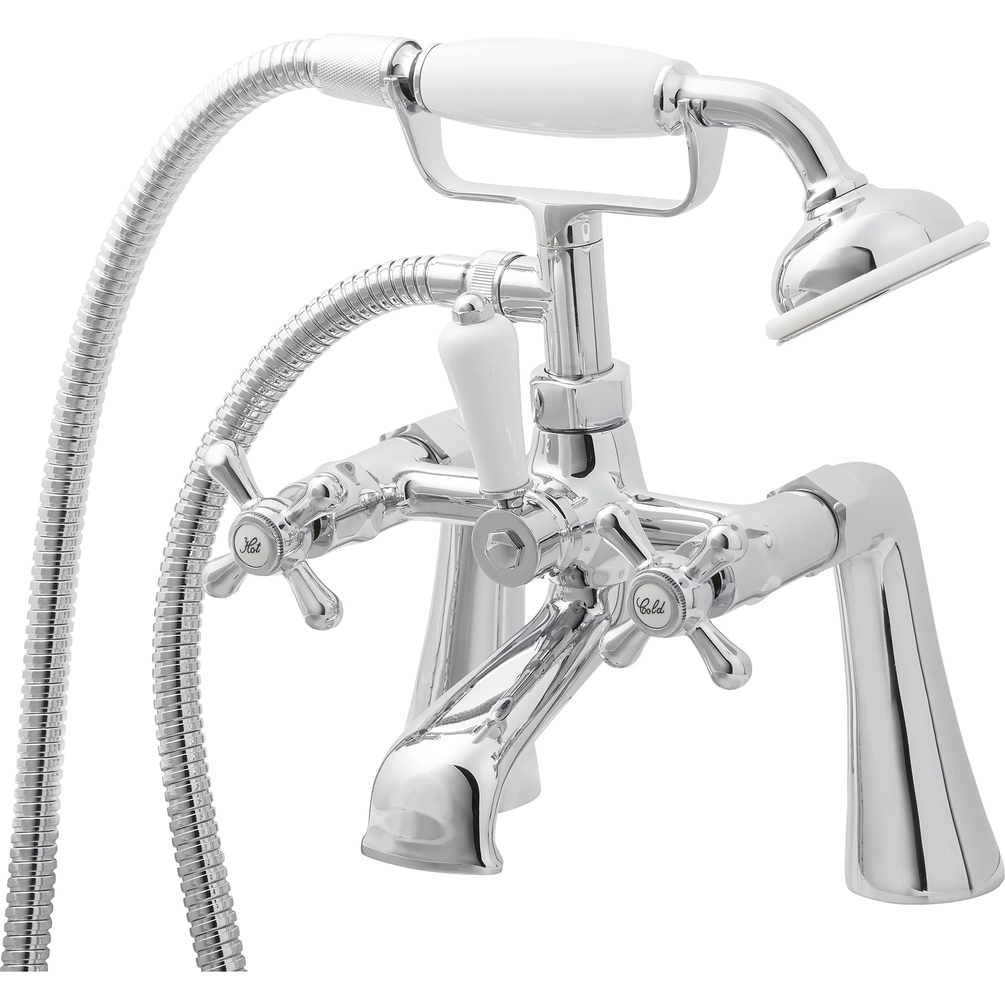 This traditional style chrome bath shower mixer from the Etel collection requires no additional purchases. This tap is suitable for high and low pressure water systems.