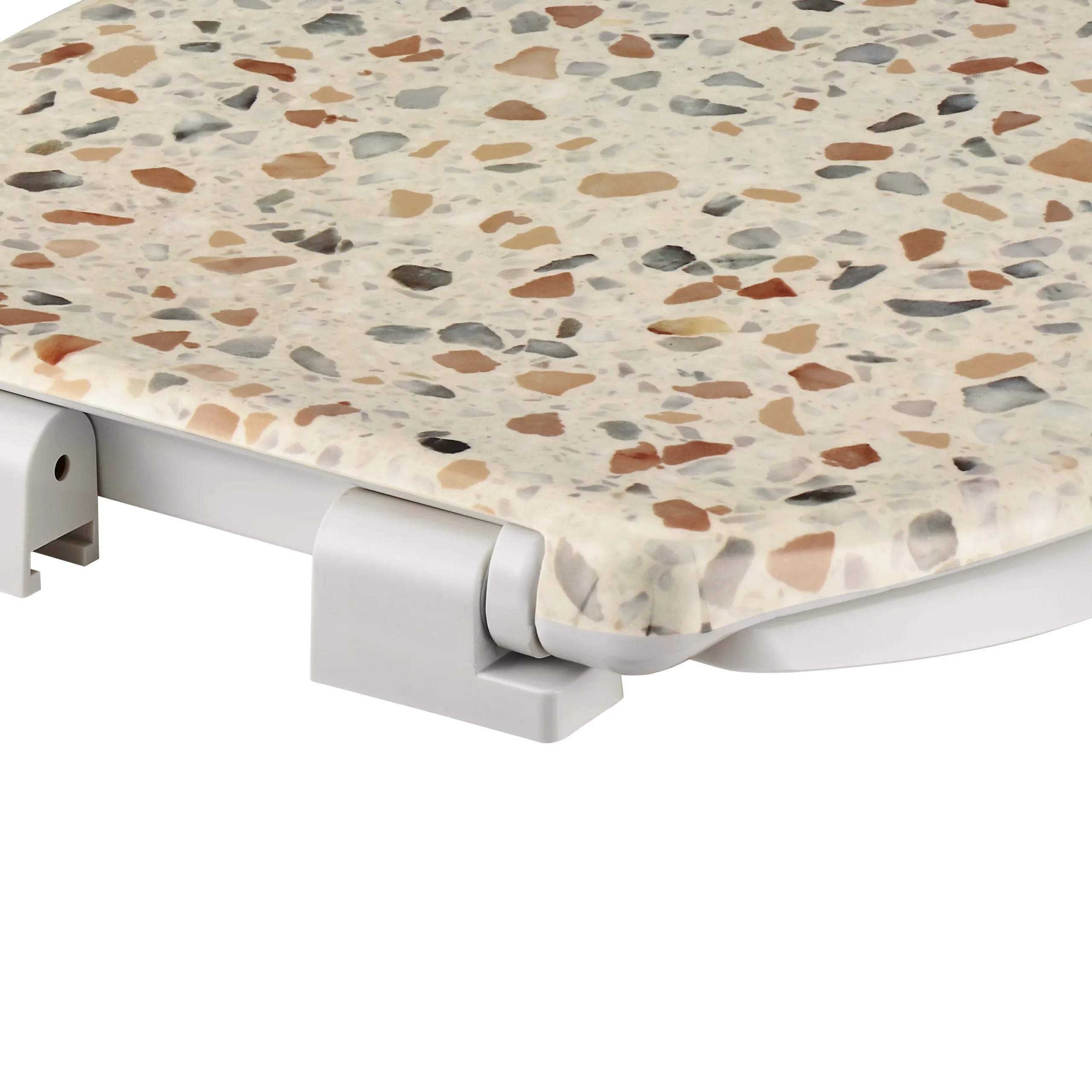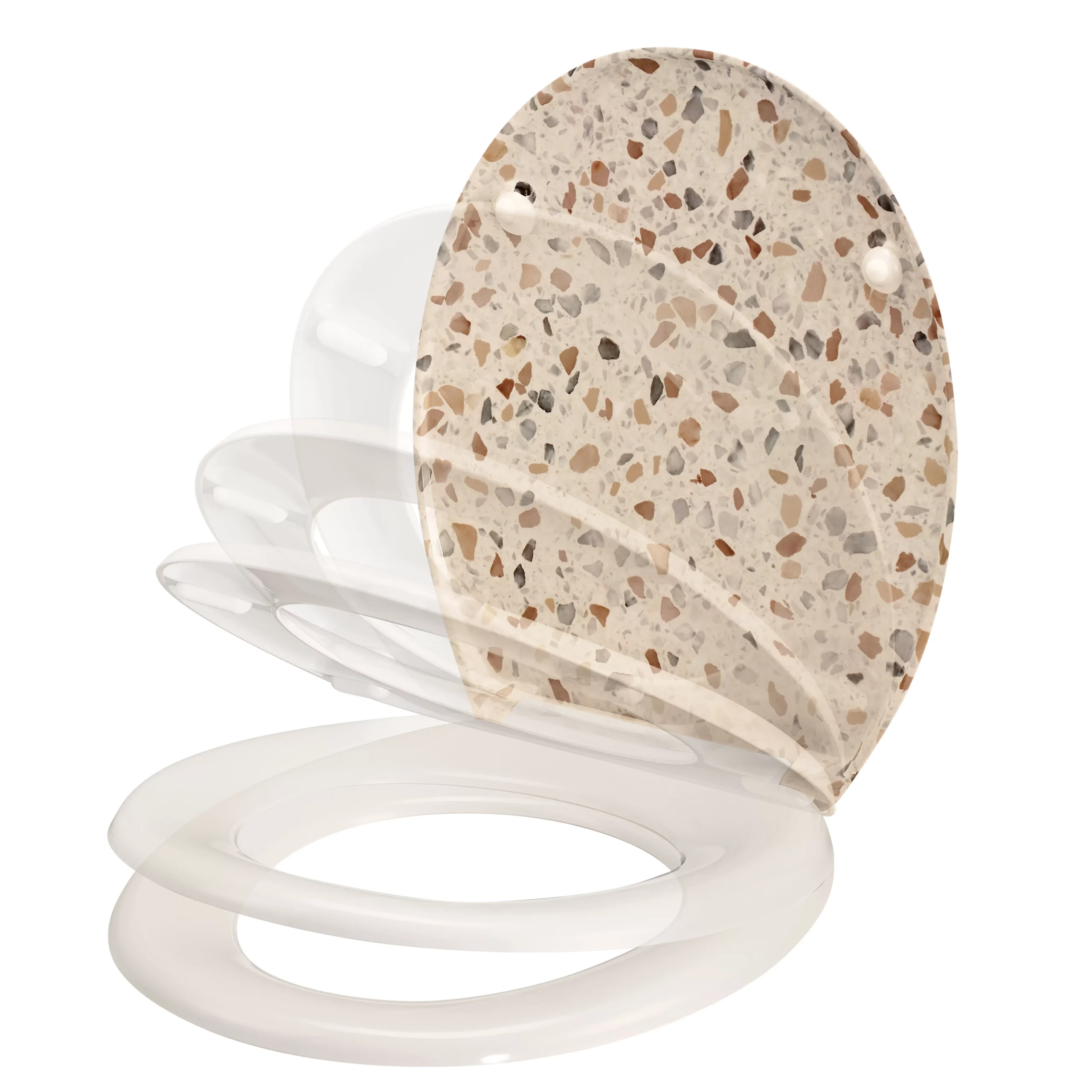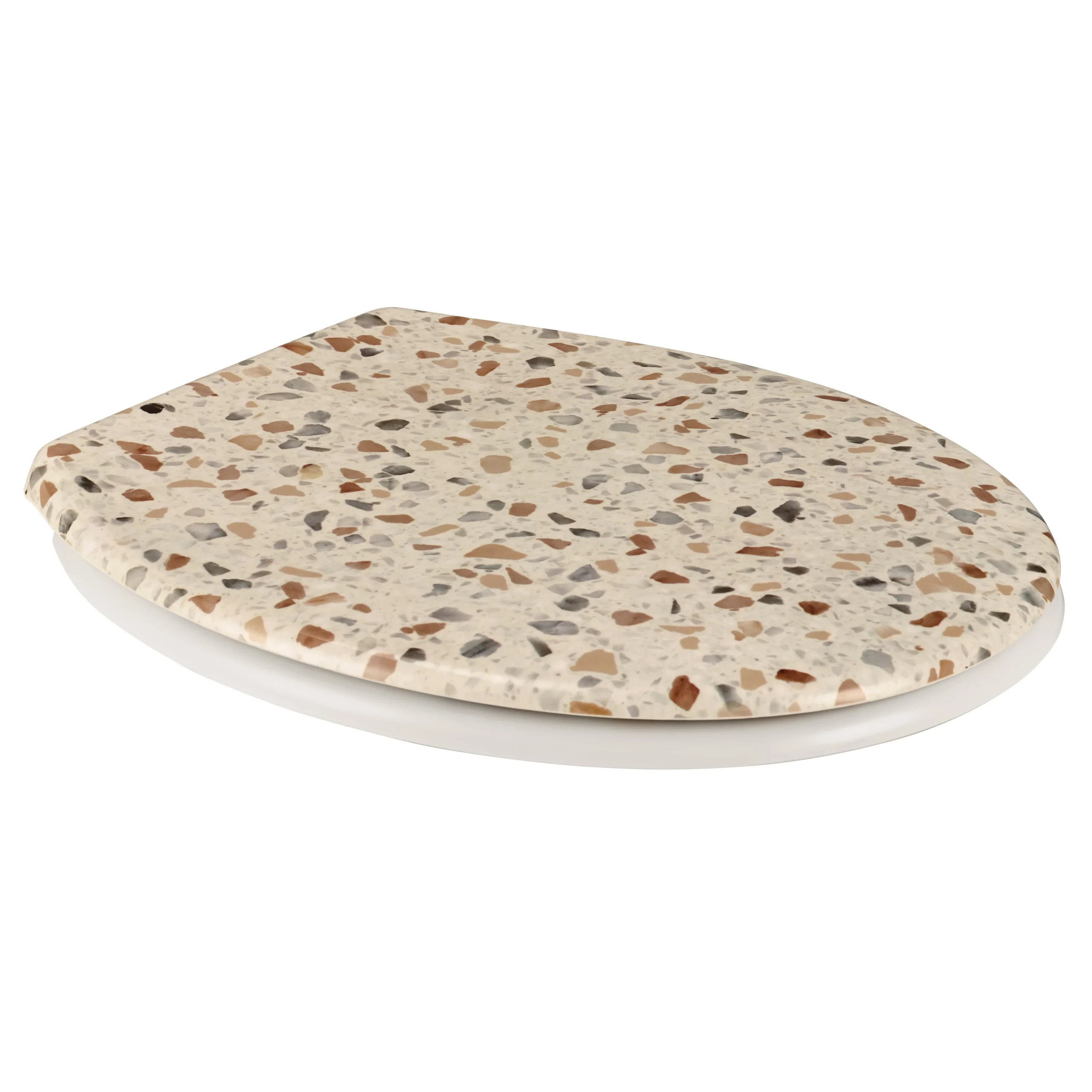 - Compatible with Duroplast toilet seat with soft close, print and compatible with most pans. Measure the distance between the fixing holes on the toilet and check the shape to ensure this toilet seat is compatible