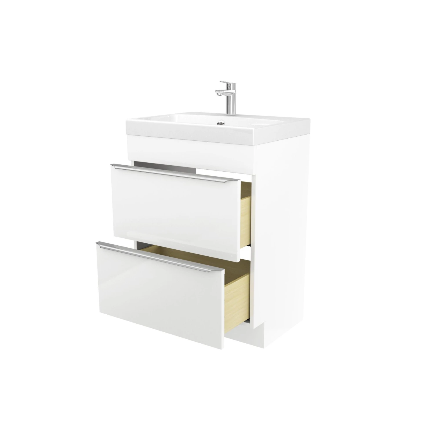 Bathrooms can be busy, cluttered spaces. So, we’ve designed the Imandra range – a smart modular furniture solution that fits any size, maximises storage and is built to last. This set comes with the Imandra vanity unit in White and Mila basin.