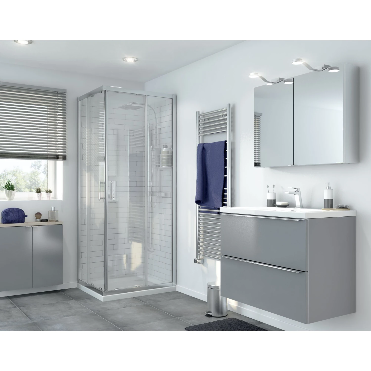 Bathrooms can be busy, cluttered spaces. So, we’ve designed the Imandra range – a smart modular furniture solution that fits any size, maximises storage and is built to last. This set comes with the Imandra vanity unit in grey and Nira basin.