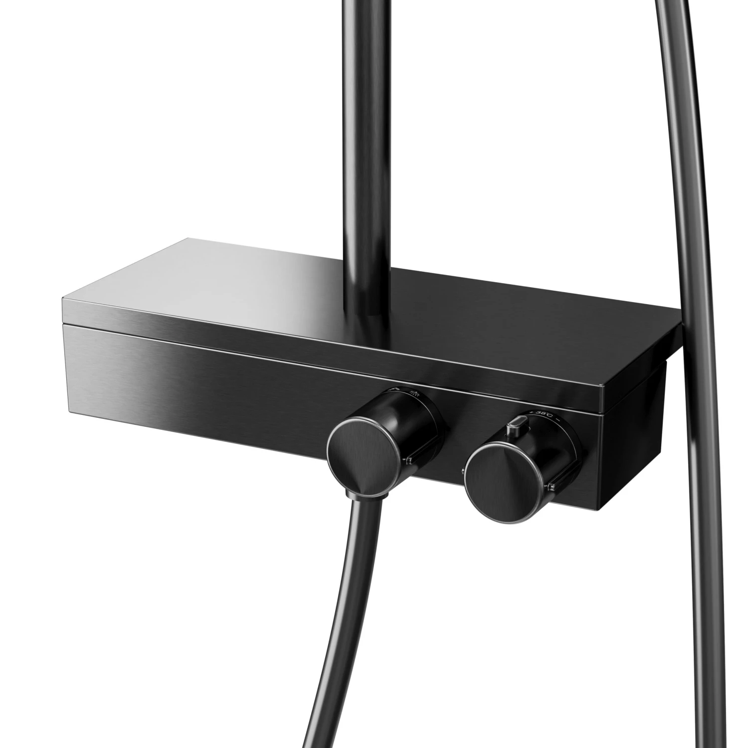 - Thermostatic temperature control constantly regulates the water temperature for more precise control. Blocks temperatures above 38°C, and automatically stops the water if there’s a fault with the cold water supply.
