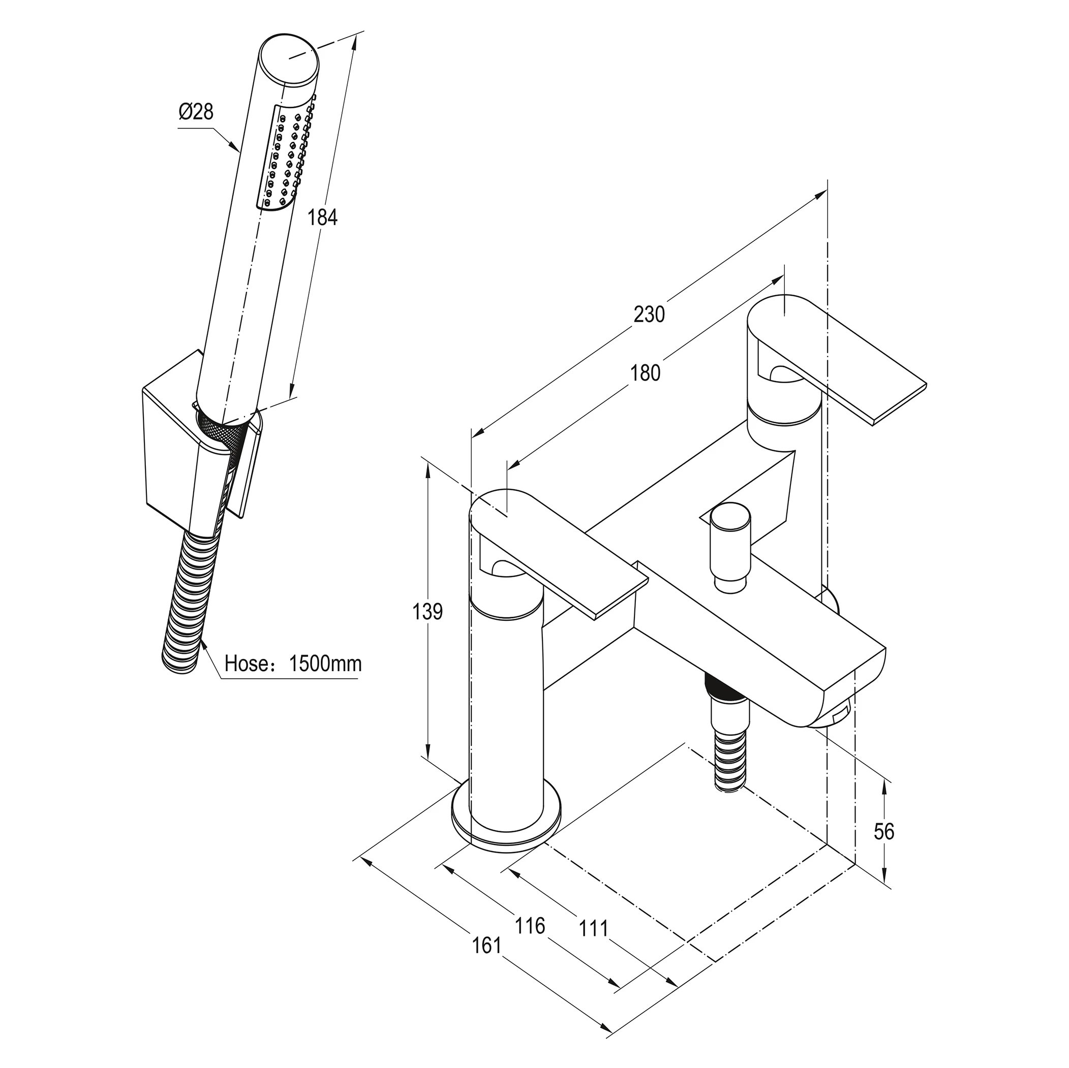 - Comes with Bath shower mixer (cartridge 30 mm), Hoses, 2x rubber washers, 2x plastic backnuts, shower head, shower holder, fixing kit and instruction manual