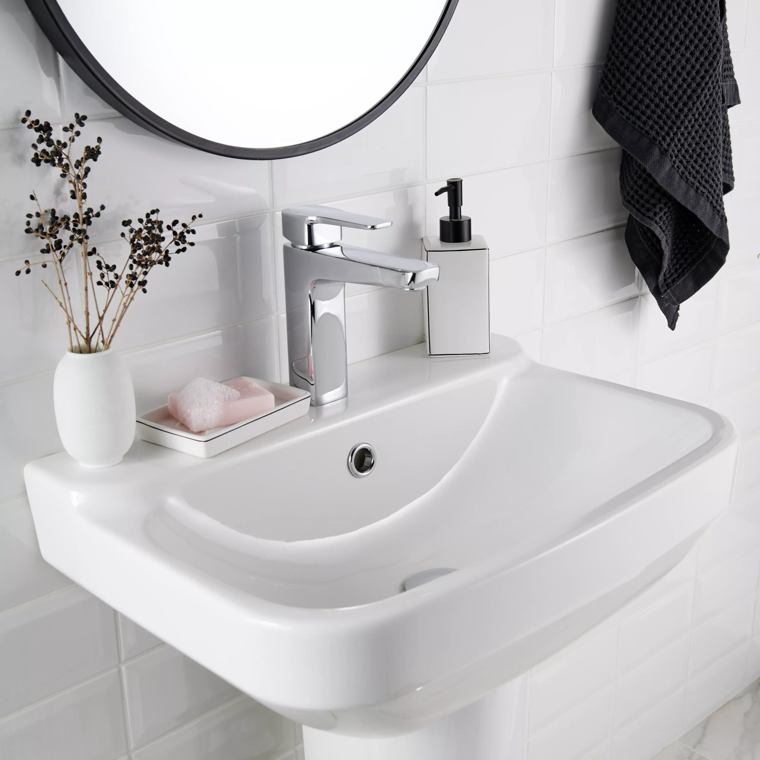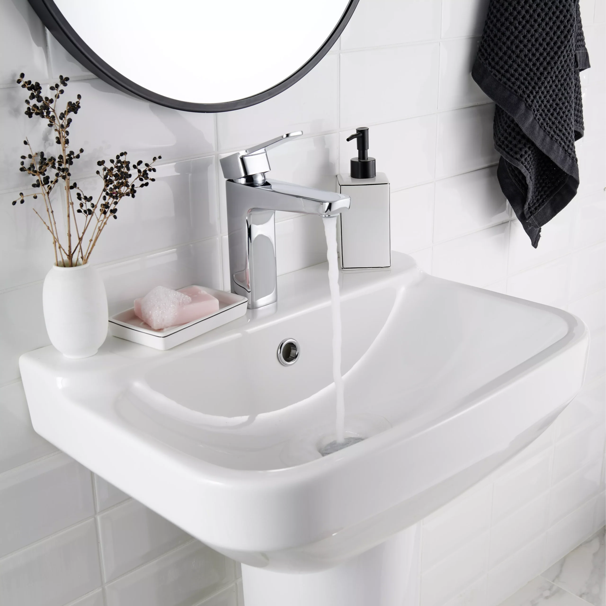 - This GoodHome Winam wash basin & pedestal set has a sleek but simple design makes it a seamless addition to your existing bathroom fixtures.