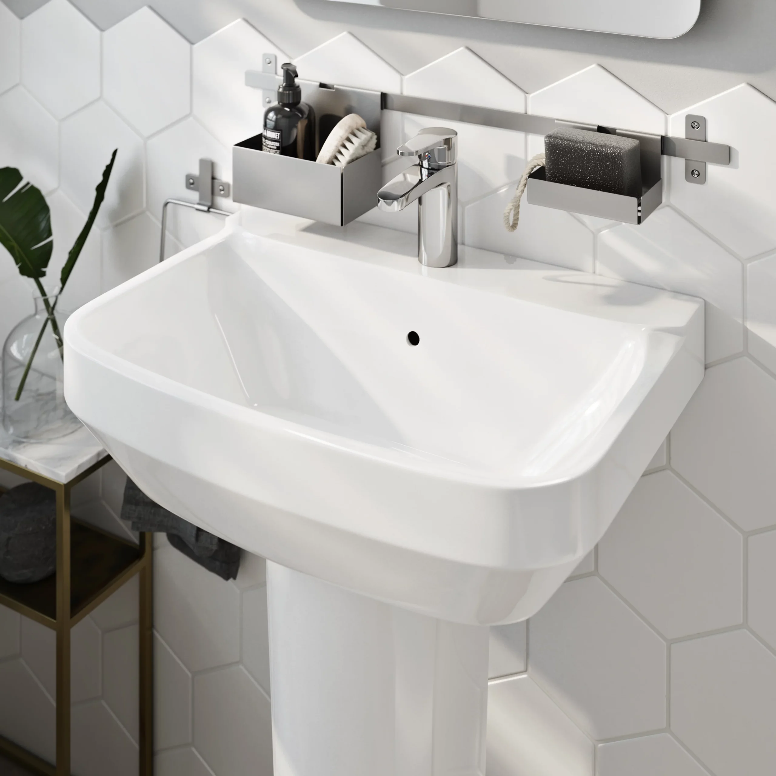 - Included:1x washbasin, 1x full pedestal and 1x fixing kit