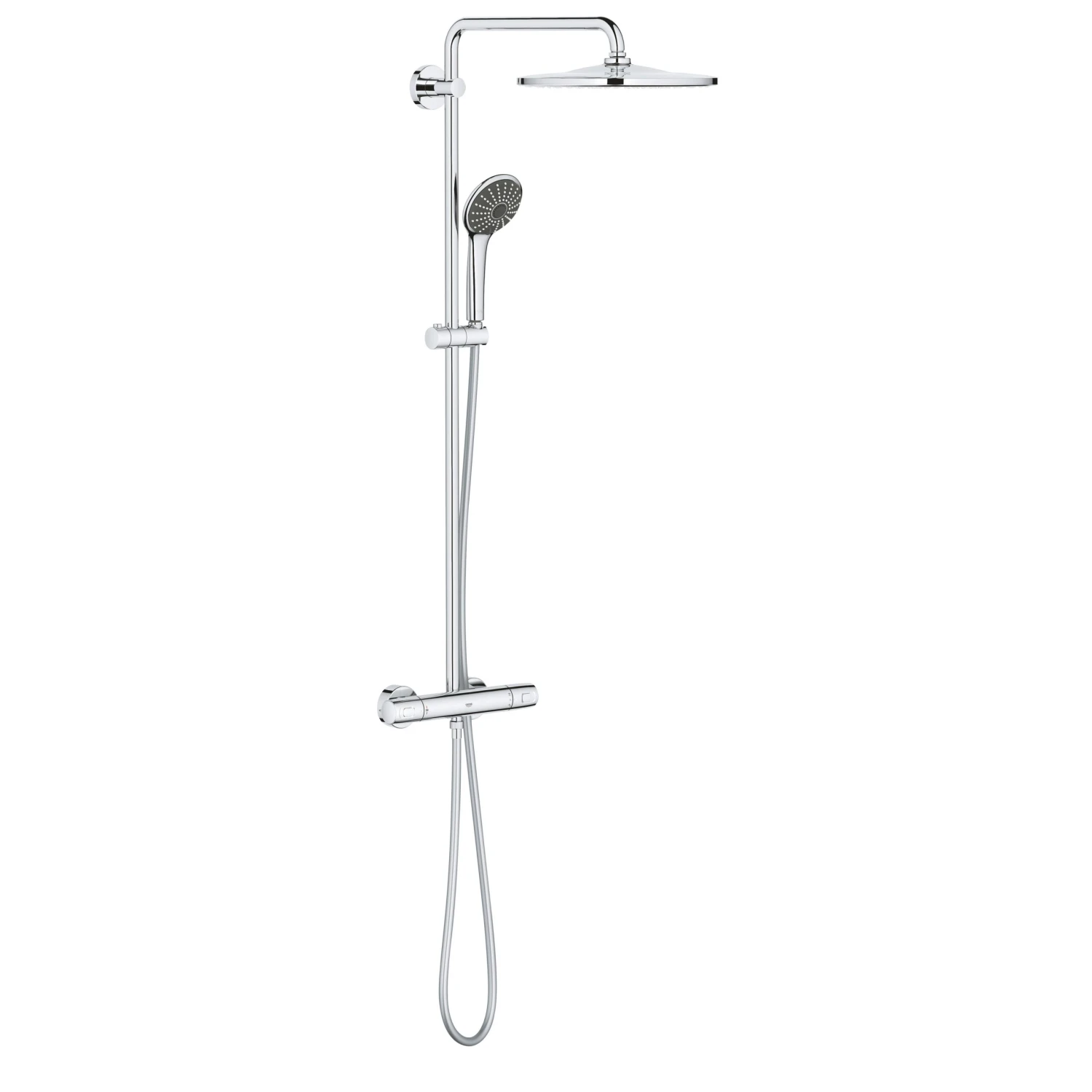 The Vitalio Joy XXL 310 system adds instant style and showering satisfaction to modern bathrooms. With ergonomic metal handles it is a delight to use and it is designed to be very easy to install. That means you can enjoy all its cutting edge Grohe technology in no time. The Grohe Vitalio Joy XXL 310 shower system – where elegant modern style and sophistication meet to create showering pleasure.