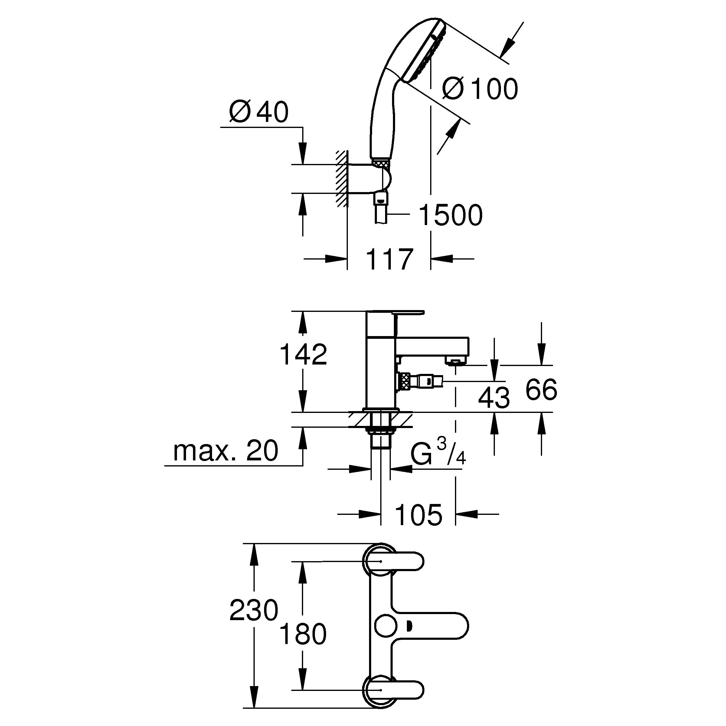 The Grohe Get bath shower mixer tap comes complete with handset, hose and wall mounted holder included. A great option to upgrade on existing bath taps, the Grohe Get bath shower mixer will use less water while improving water flow. Effortless to install and maintain, a gentle wipe is all that is needed to remove any marks from the scratch resistant chrome coating of the Grohe Get bath shower mixer tap.
