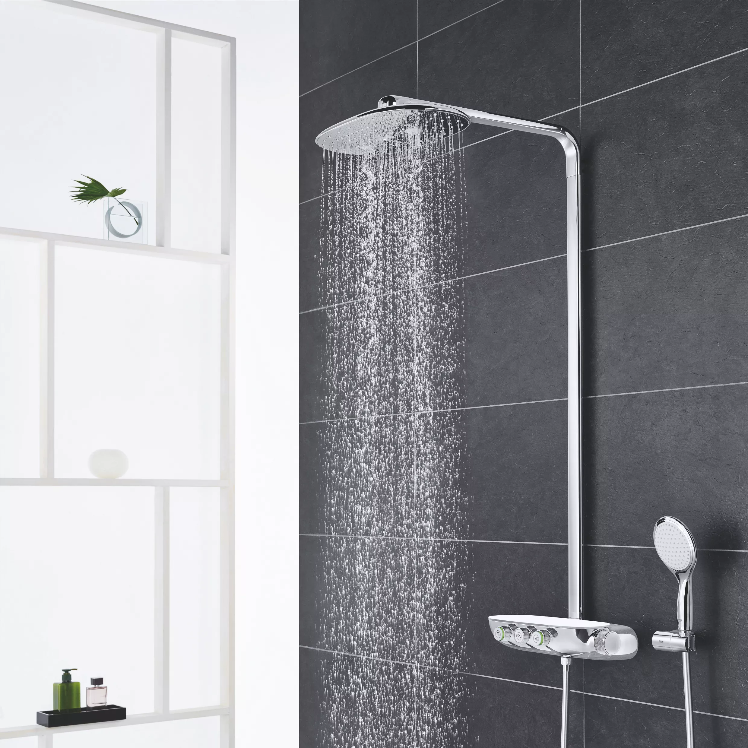 Effortless and sophisticated, the Grohe Rain shower SmartControl 360 Duo Shower System provides maximum comfort in a stylish design. A fully thermostatic Shower System that has it all, the innovative SmartControl technology allows you to select and combine head and hand shower as well as spray patterns and to adjust the water volume at the push/turn of a button. The perfect combination of functionality and design.