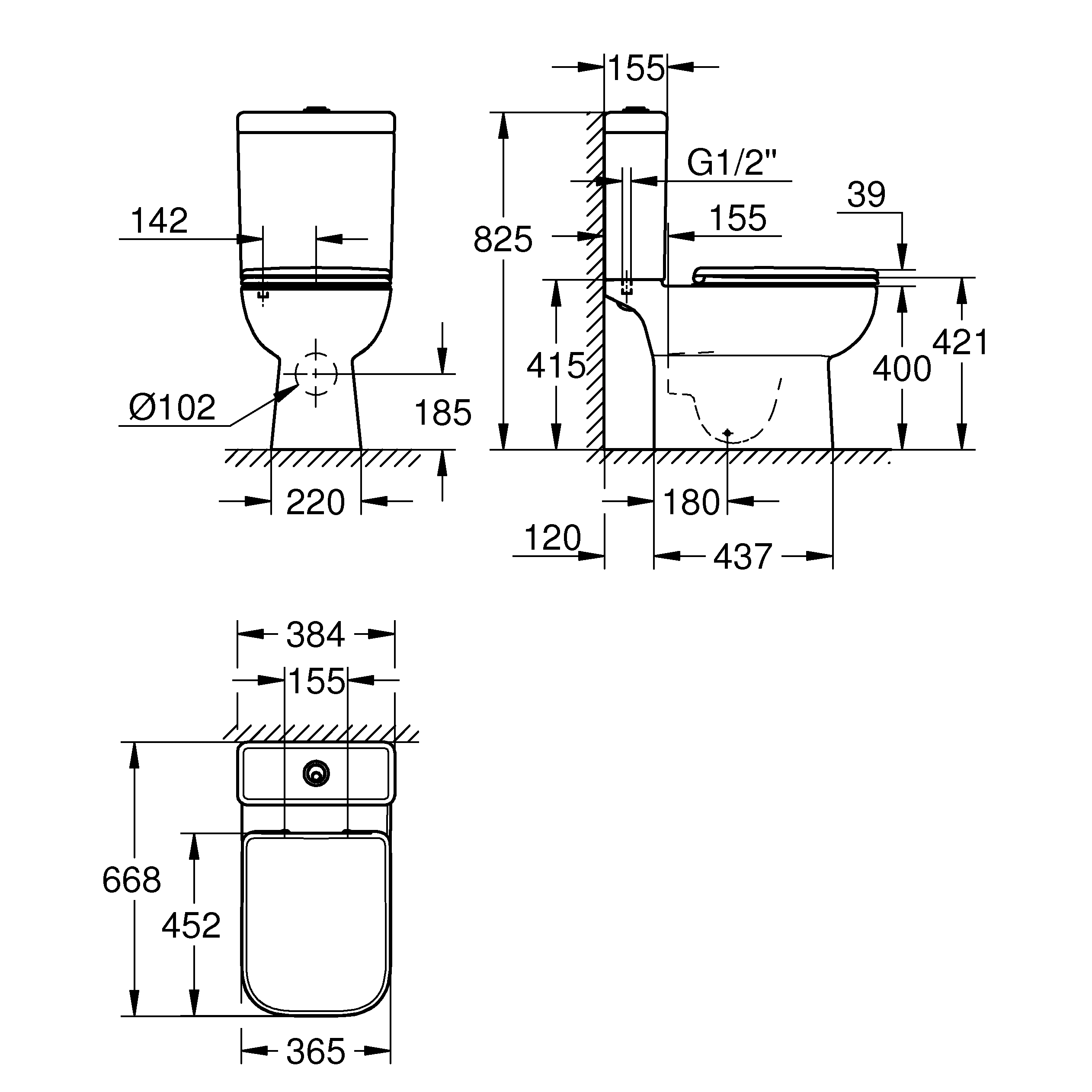 - Included: 1x floor standing toilet with horizontal outlet, 1x including fixation set, 1x including flushing set & button, 1x lid