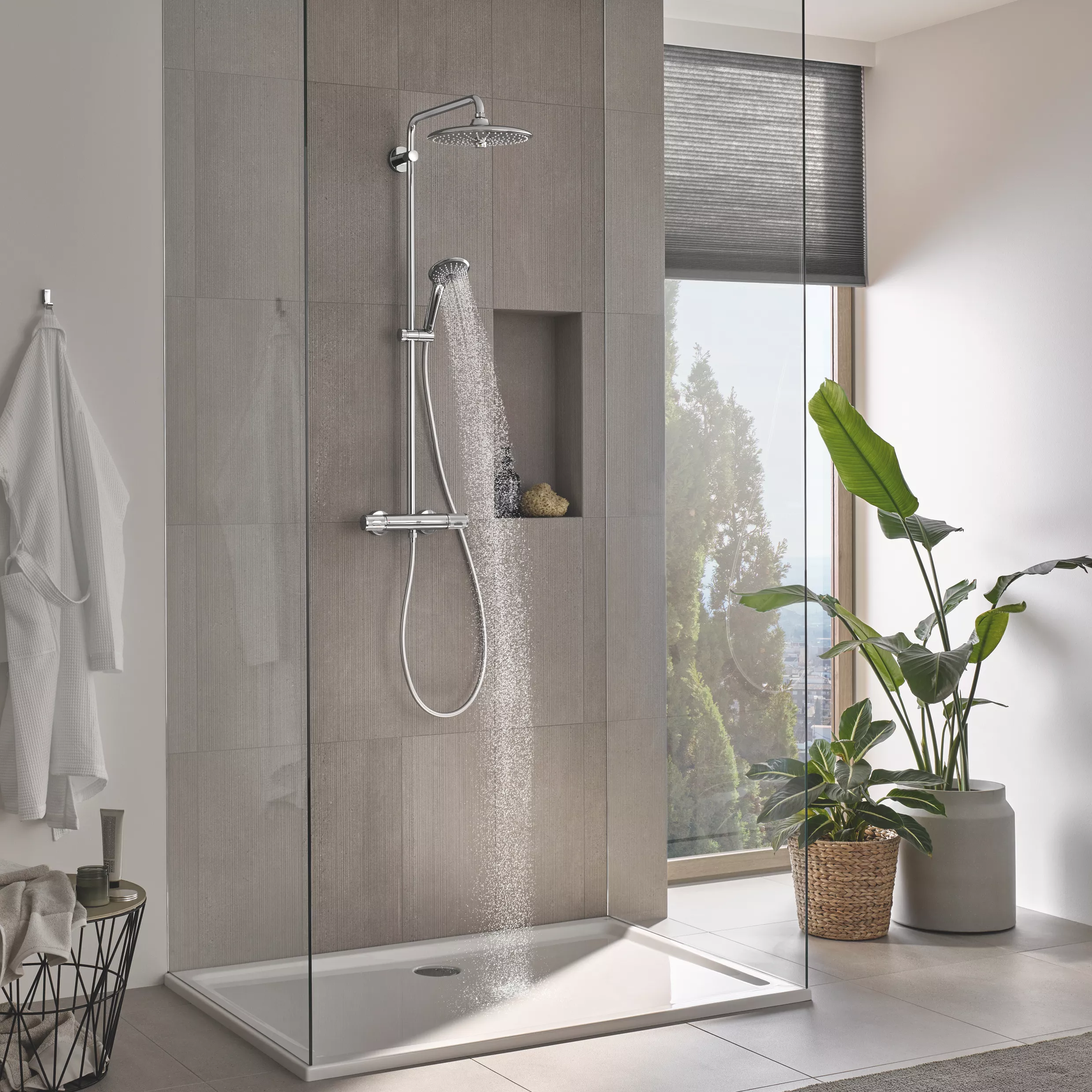 - With Grohe TurboStat thermostat technology, set your desired temperature then enjoy perfect comfort knowing your water won’t suddenly heat up or go cold no matter how the supply fluctuates