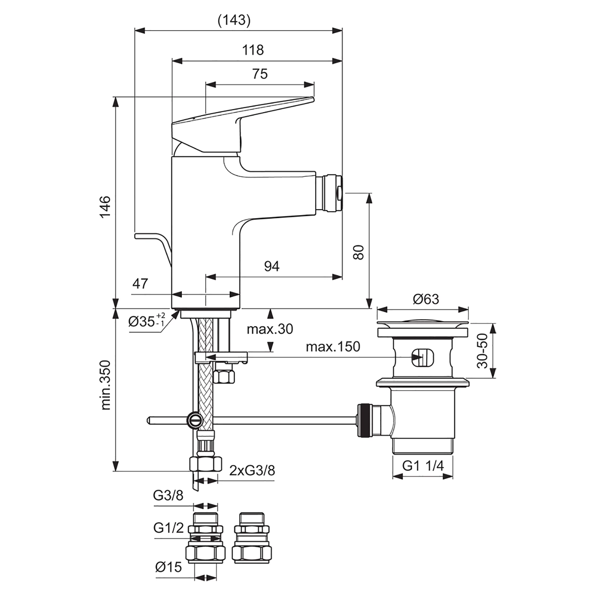 A stylish and contemporary deck-mounted bidet tap that adds a touch of luxury to your bathroom. This premium yet affordable bidet mixer tap from Ideal Standard features a durable chrome finish and solid brass construction. Its square design and sleek lever handle give it a modern minimalist look that complements any bathroom decor. The bidet tap comes complete with flexible tails for easy installation and a pop-up waste. It has a high quality 35mm ceramic cartridge that provides smooth control over water flow and temperature.