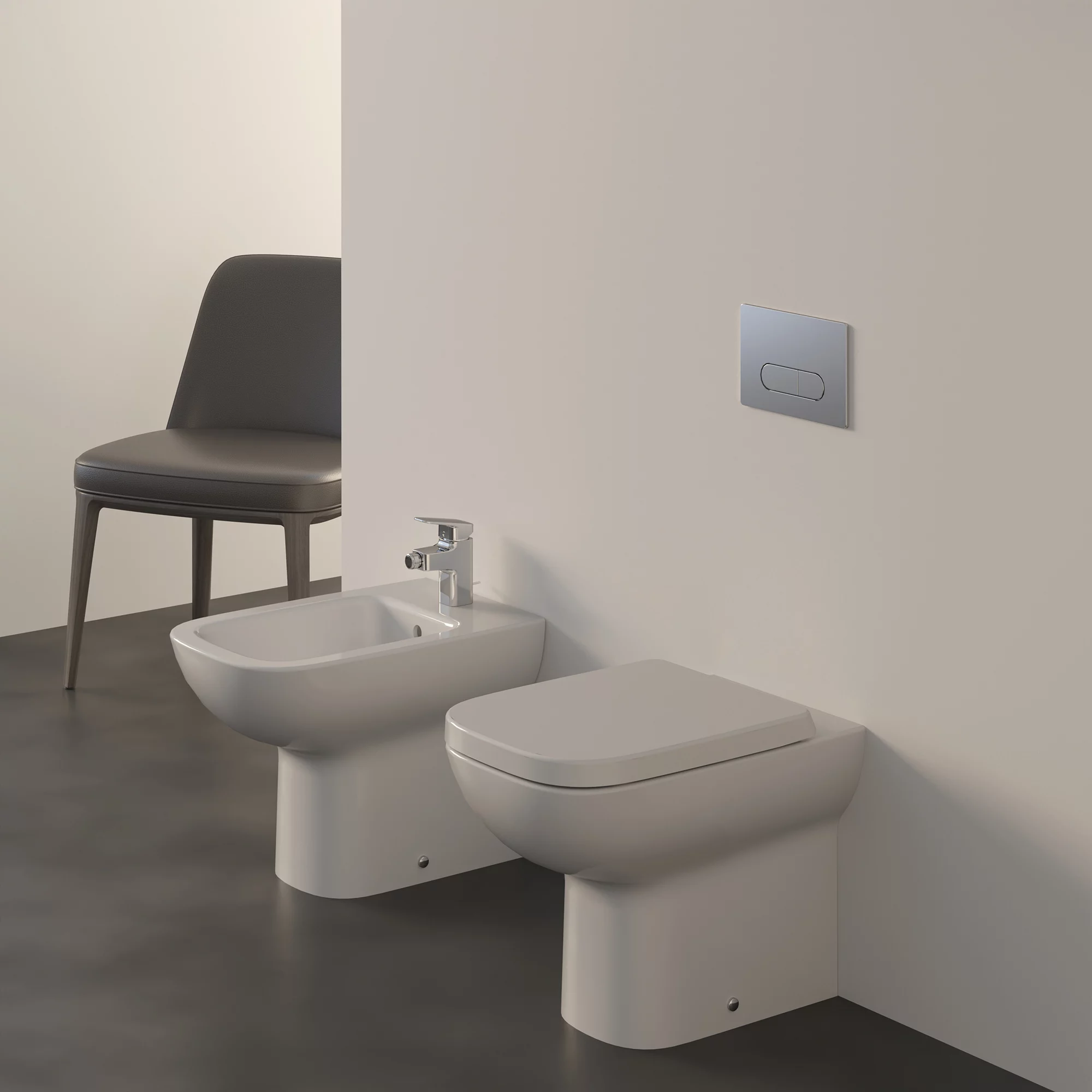 Transform your bathroom with this stylish square toilet from Ideal Standard. The sleek white vitreous china design features soft close seat for a gentle, quiet close and concealed cistern for a minimal look. With a generous 6 litre flush, it keeps your bathroom fresh and clean. The rimless bowl is easy to wipe clean and the stainless steel hinges are durable yet discreet. Adding a touch of contemporary class to your space, this back to wall toilet brings the latest in innovative bathroom technology to your home.