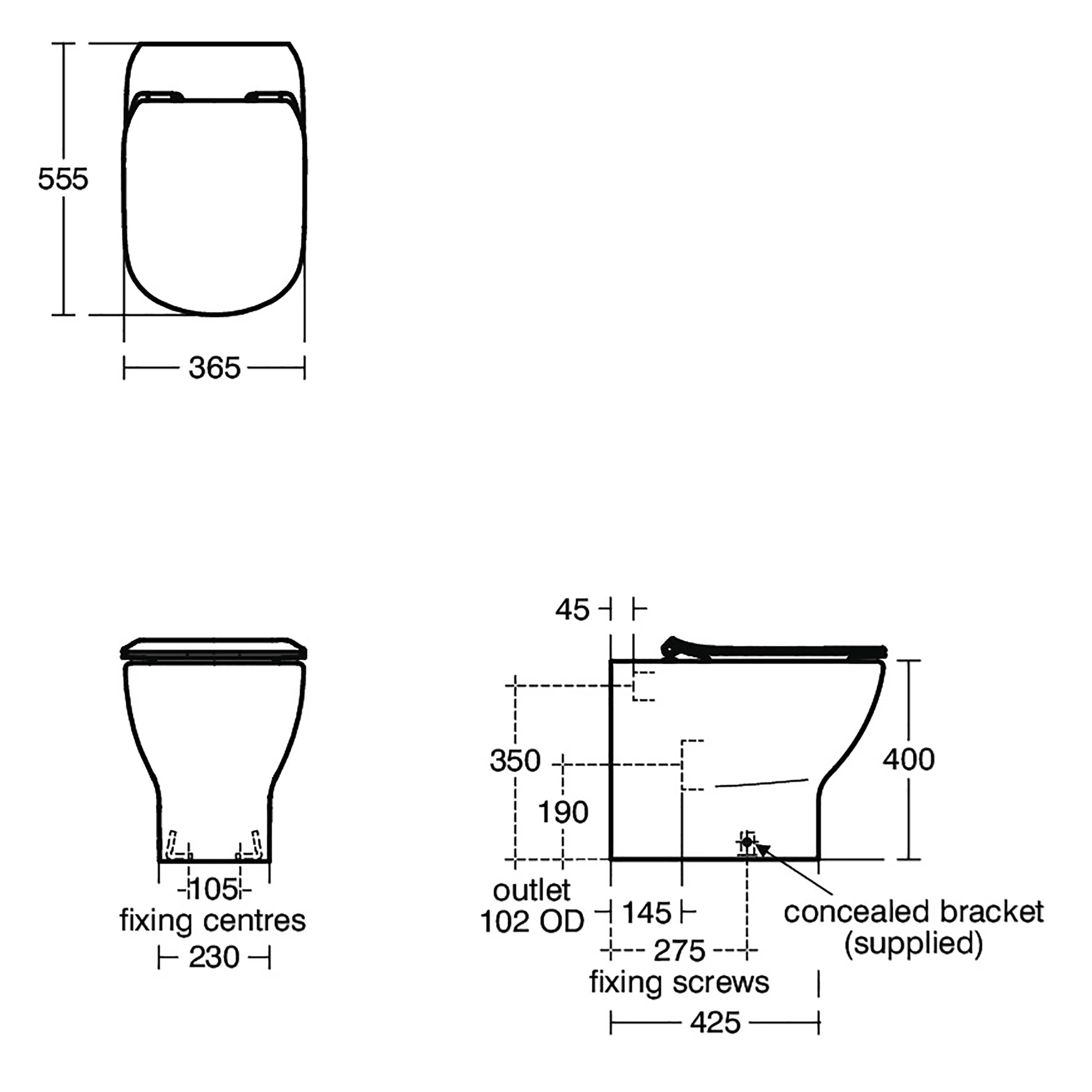| Toilet back type | Back to wall |