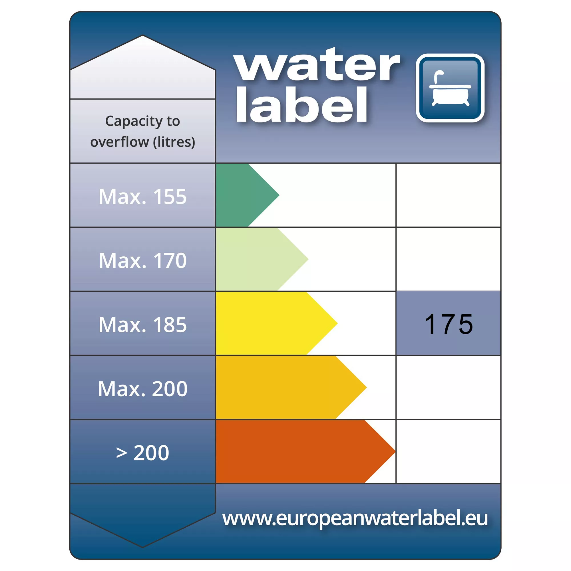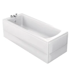 The Vue rectangular straight bath from Ideal Standard has a simple, straight style suited to most bathroom layouts. The bath comes with two tap mounting holes and holds 175L litres of water. Compatible with plug and chain or pop up waste.