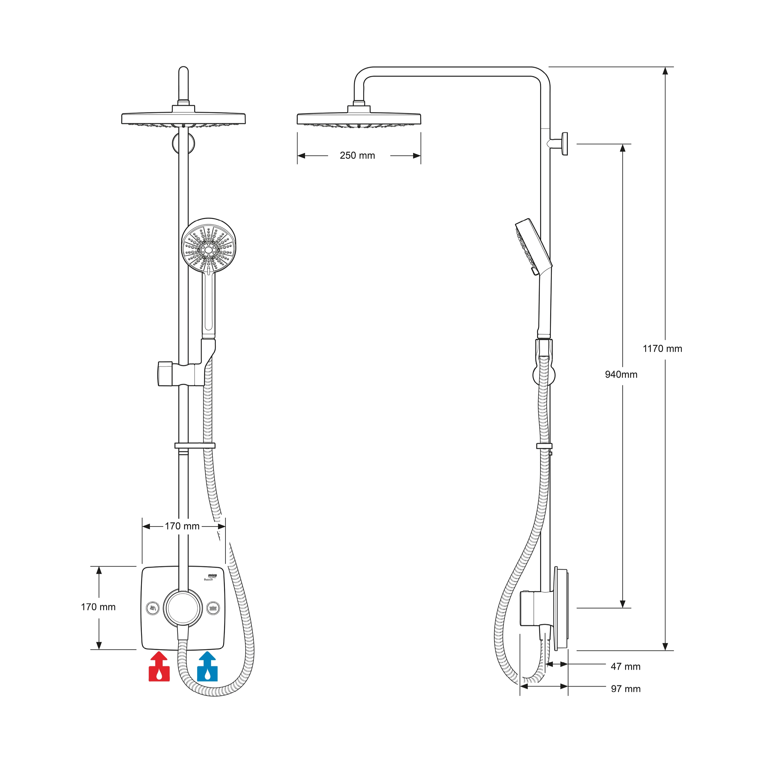 - Two heads are better than one – Savour the indulgence of the 250mm overhead. Switch things up with four handset modes. Or double up for a spa-like experience