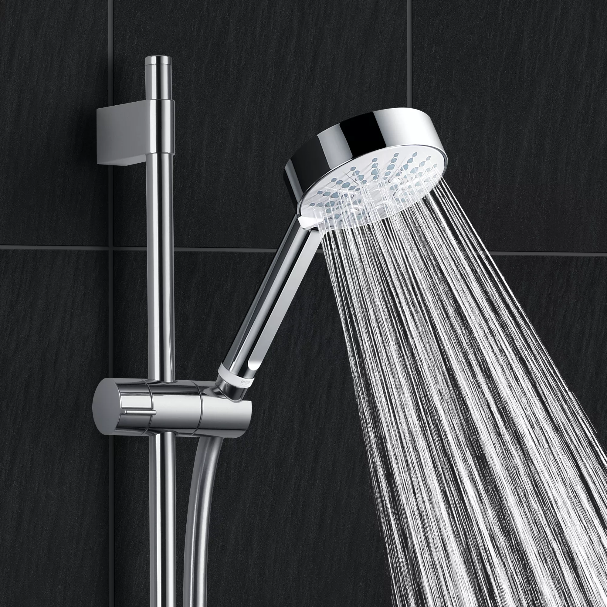 - Easy cleaning – the shower unit is easy to clean due to its smooth, flat surface whilst the handset has rub clean nozzles