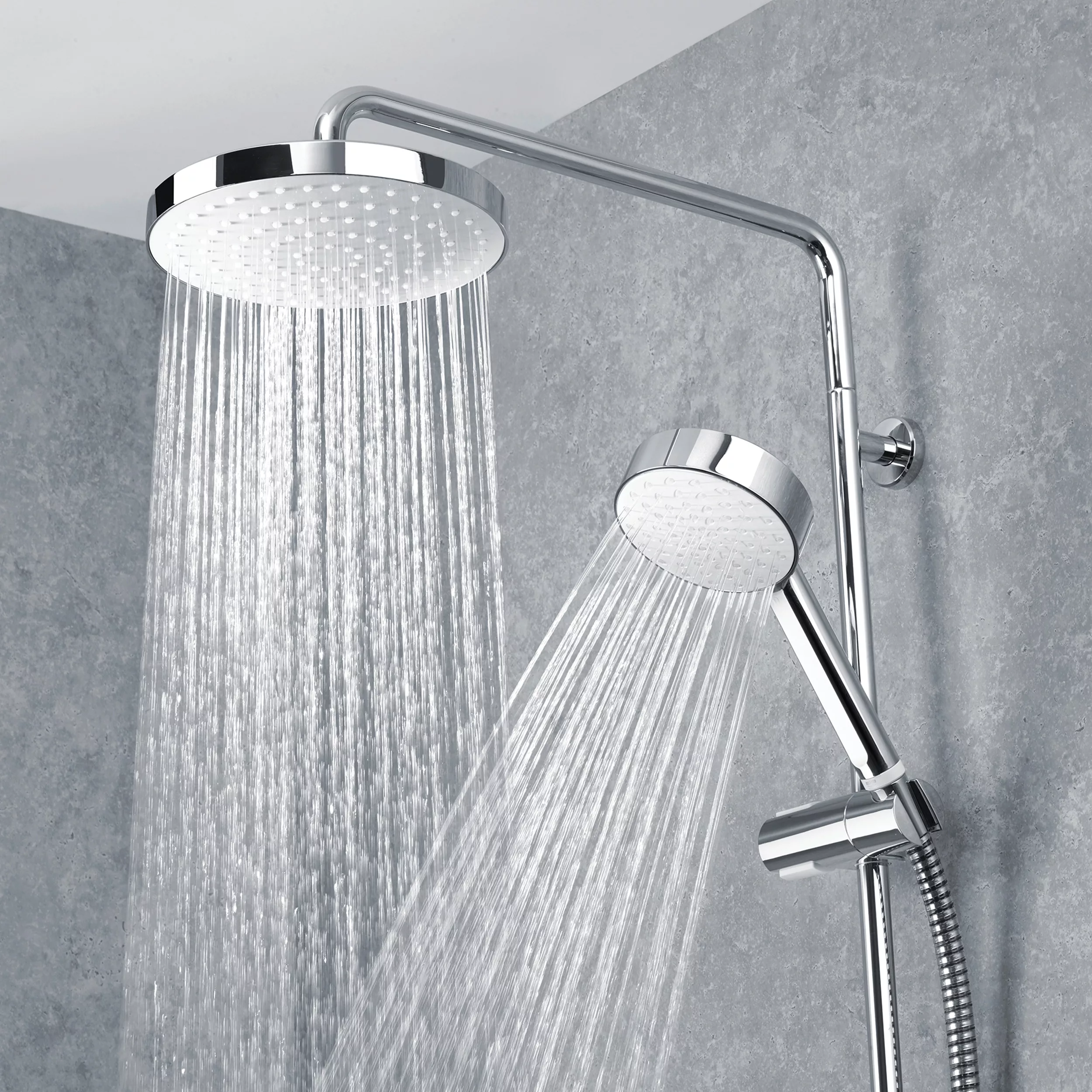 - Indulgent, by design – Enjoy the generous 200mm deluge head on its own or at the same time as the handset and bring an extra touch of luxury to your shower experience. (For dual outlet variant only)