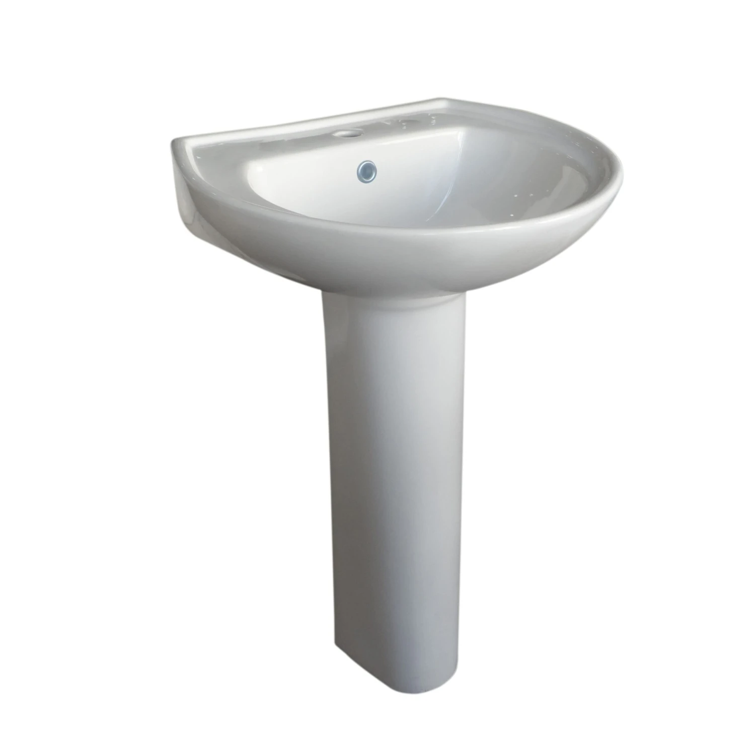 This Plumbsure Bodmin basin and full pedestal is perfectly designed to hide pipework and add an elegant finish touch to your bathroom. Ideal for both a traditional or more modern bathroom style due to its simplicity.