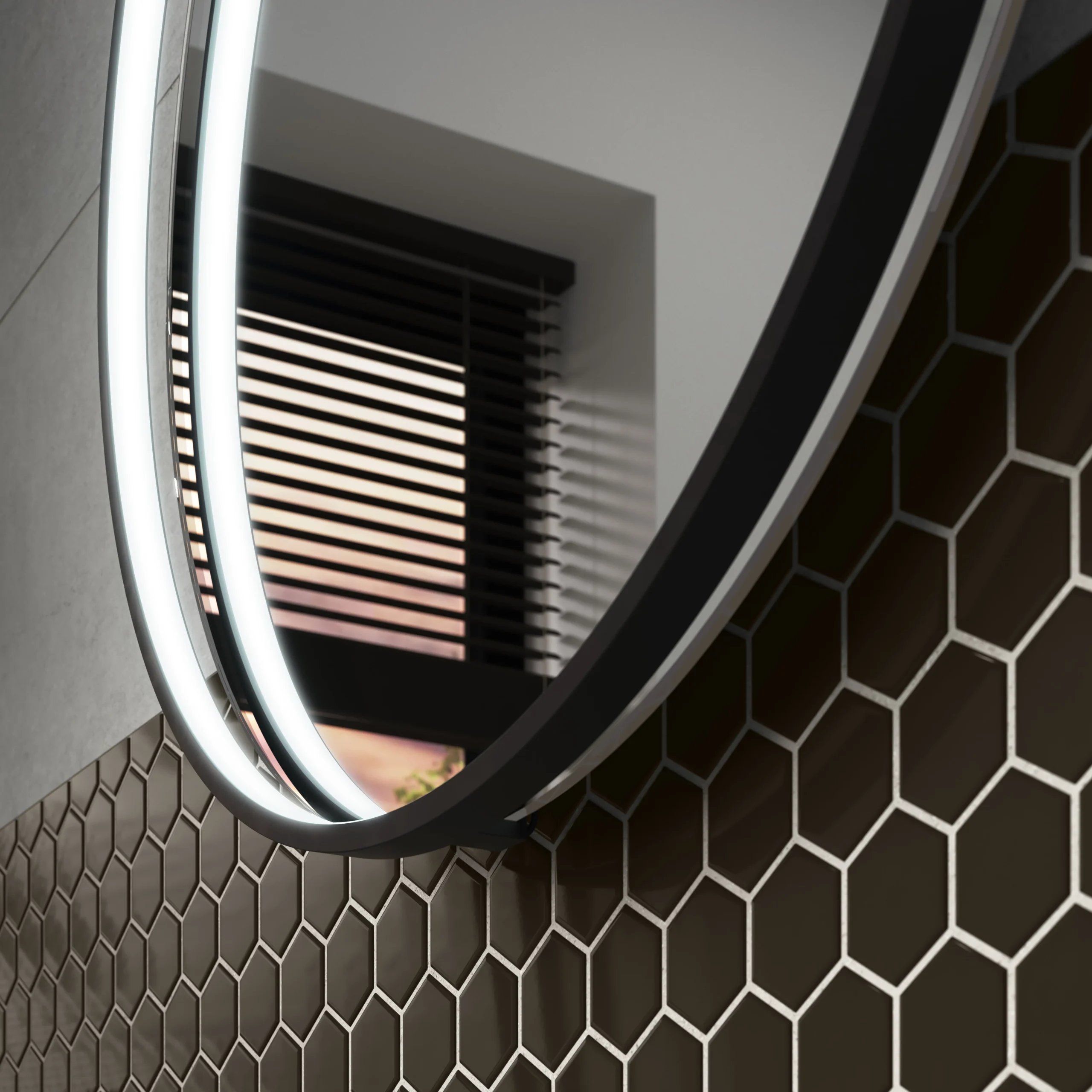- This contemporary and stylish Aspect black matt finish framed mirror creates an ambience in any modern bathroom with its fully diffused, cool white LED.