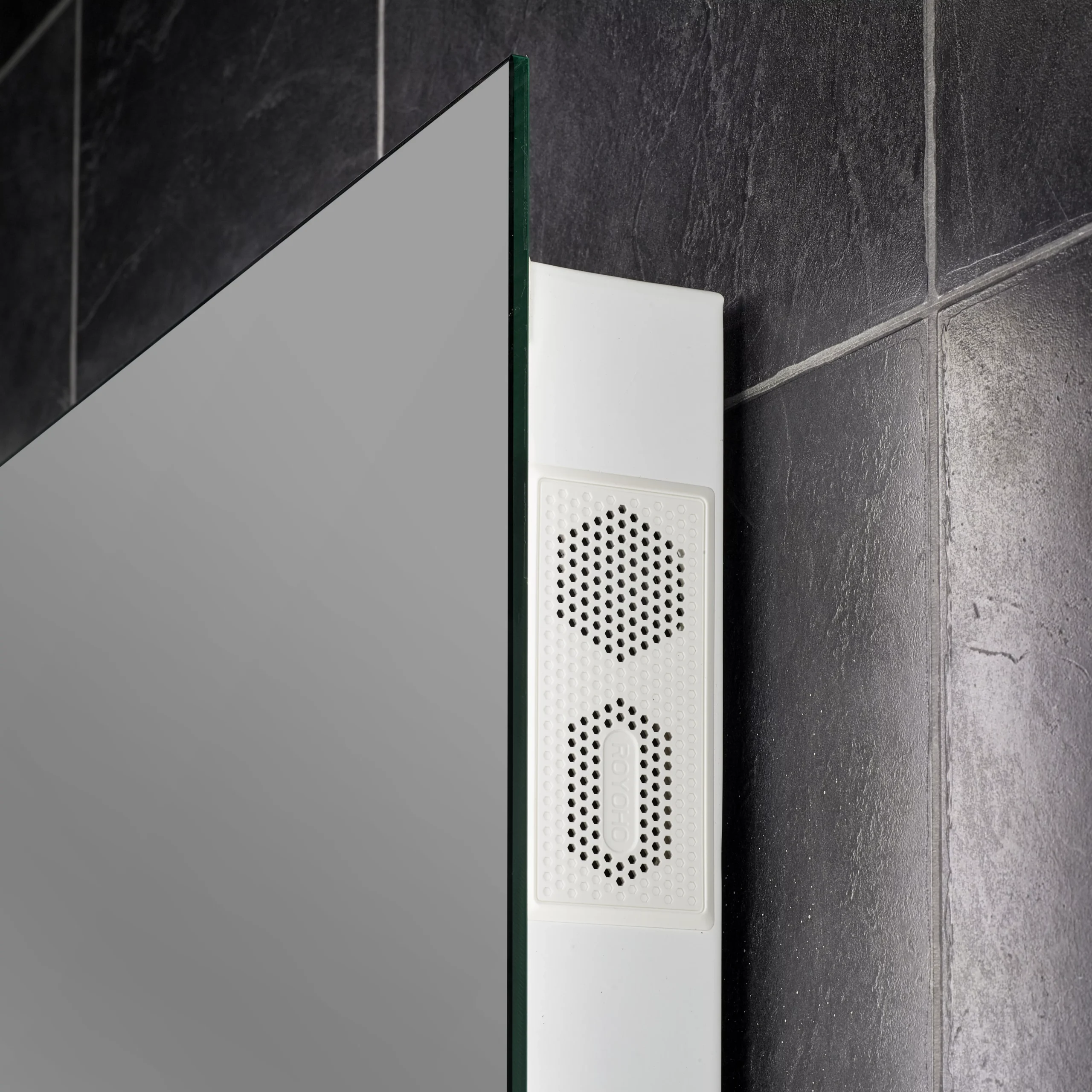 - The Avalon is a stylish backlit illuminated mirror and adds a great ambience to the bathroom with a cool while LED light. The mirror can be connected to your mobile and smart home devices to stream music while in the shower through the integrated Bluetooth speakers.