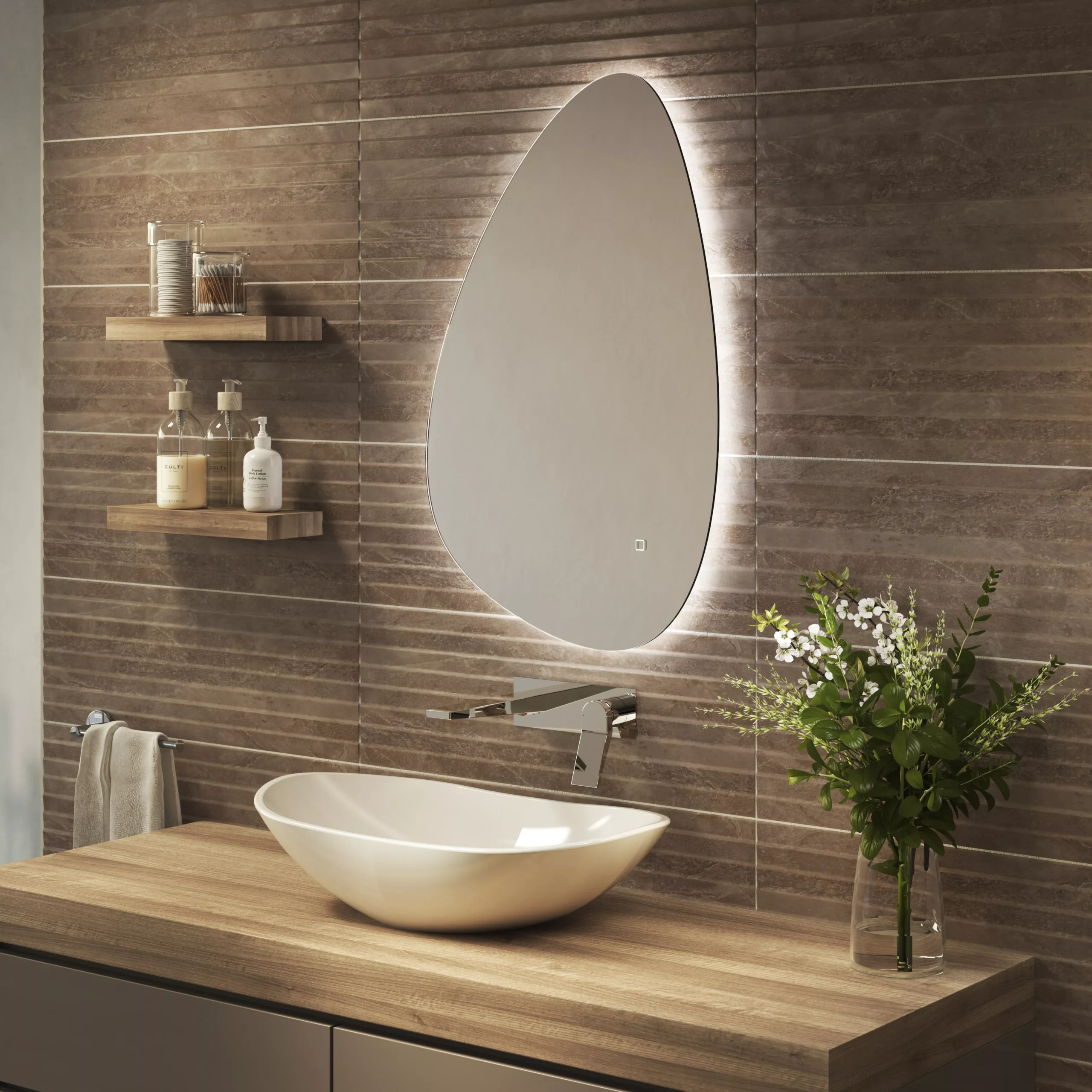 - The back lit illuminated Mistral mirror has a stylish and modern design due to its teardrop shape. It will stand out in any bathroom and the colour changing LEDs will add an ambience too.