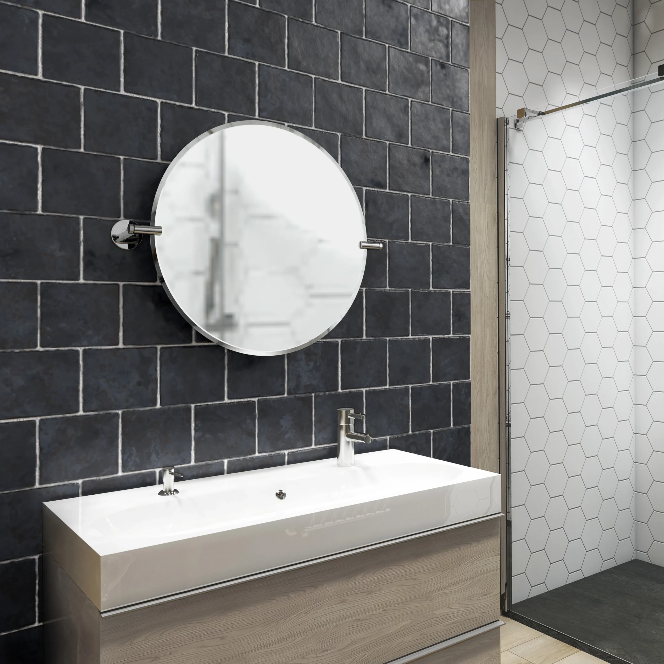 - Chrome, tiltable pivot brackets to adjust the angle of the mirror
