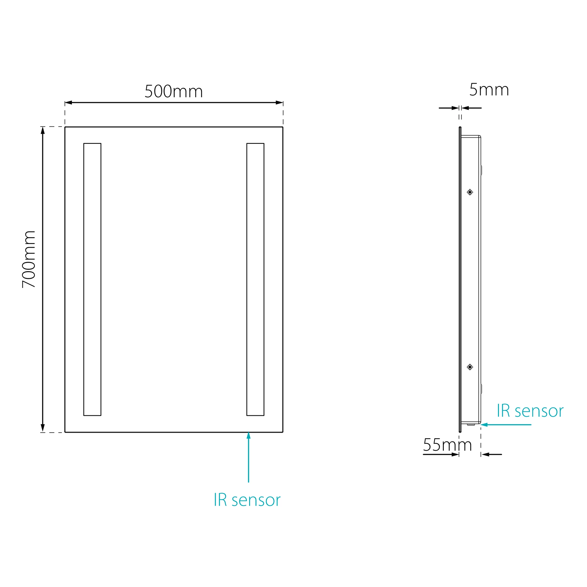 - Cool white, diffused LED vertical strip feature illumination