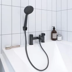 GoodHome Cavally Silver Chrome Effect Ceramic Disk Floor-mounted Mixer Tap With Shower Kit