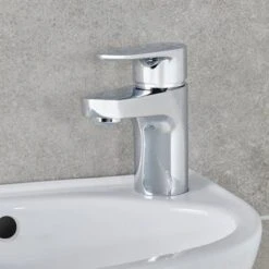GoodHome Cavally Medium Gloss Chrome Effect Round Deck-mounted Manual Basin Mono Mixer Tap