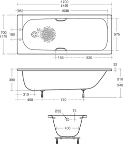 Armitage Shanks Sandringham Acrylic Rectangular White Straight 2 Tap Hole Bath (L)1685mm (W)695mm