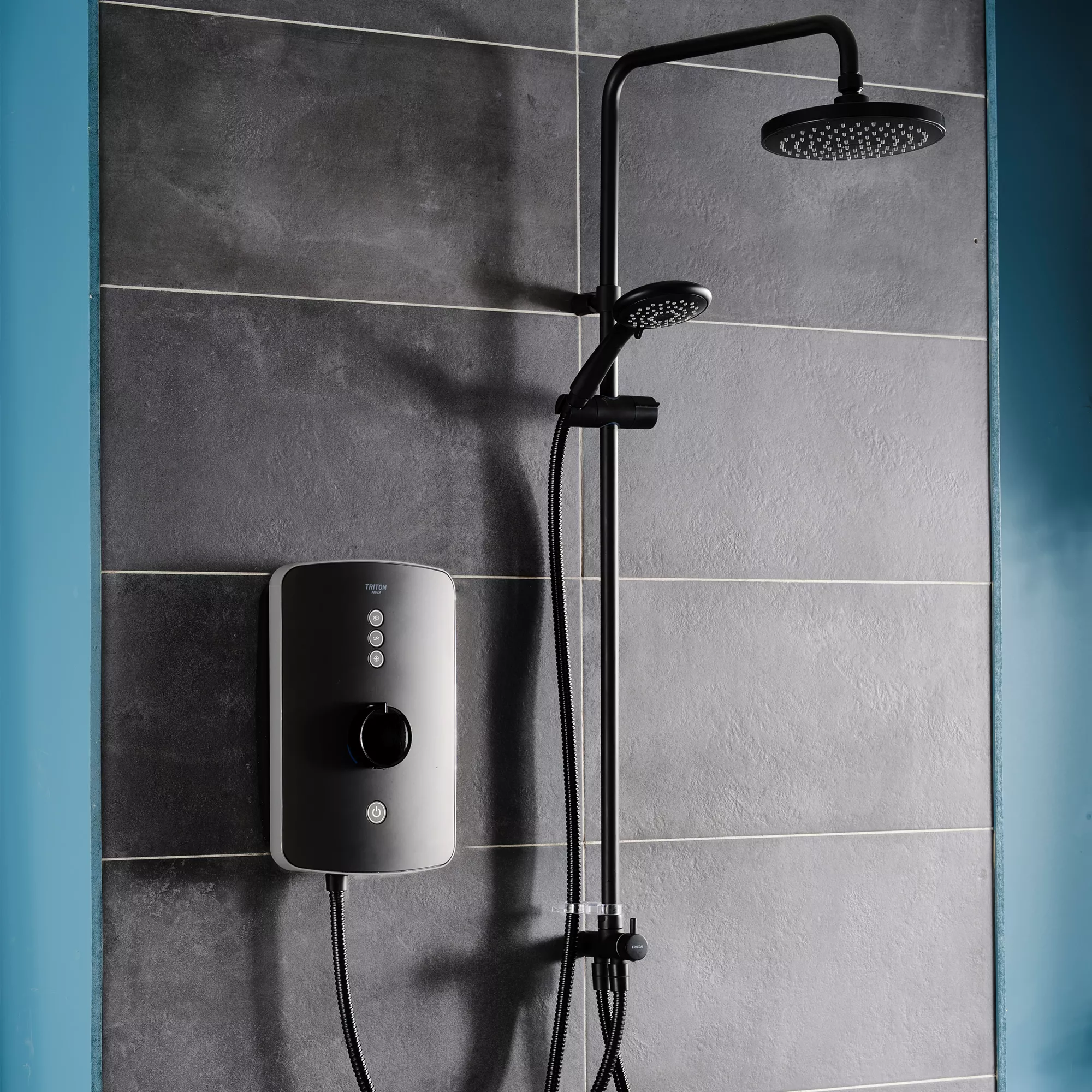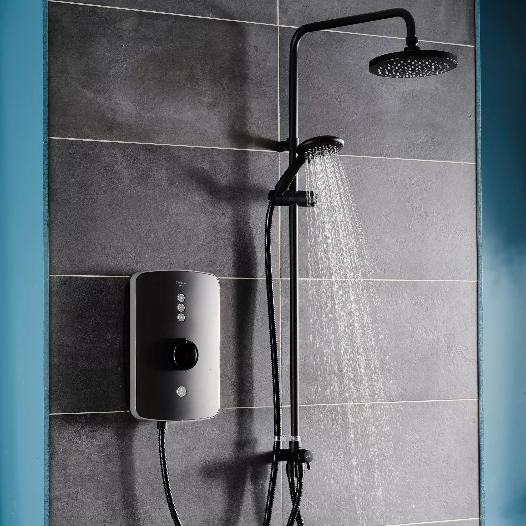 - Diverter – Easily divert flow between five spray pattern handset and overhead fixed shower head