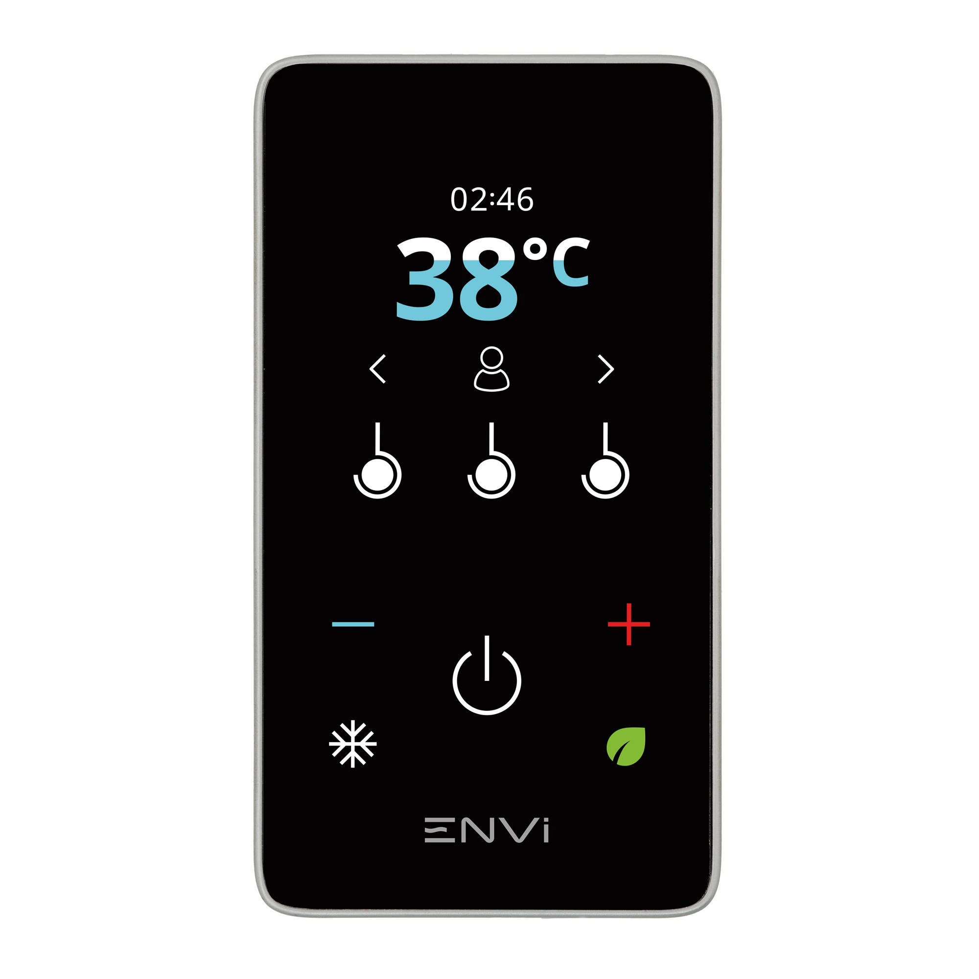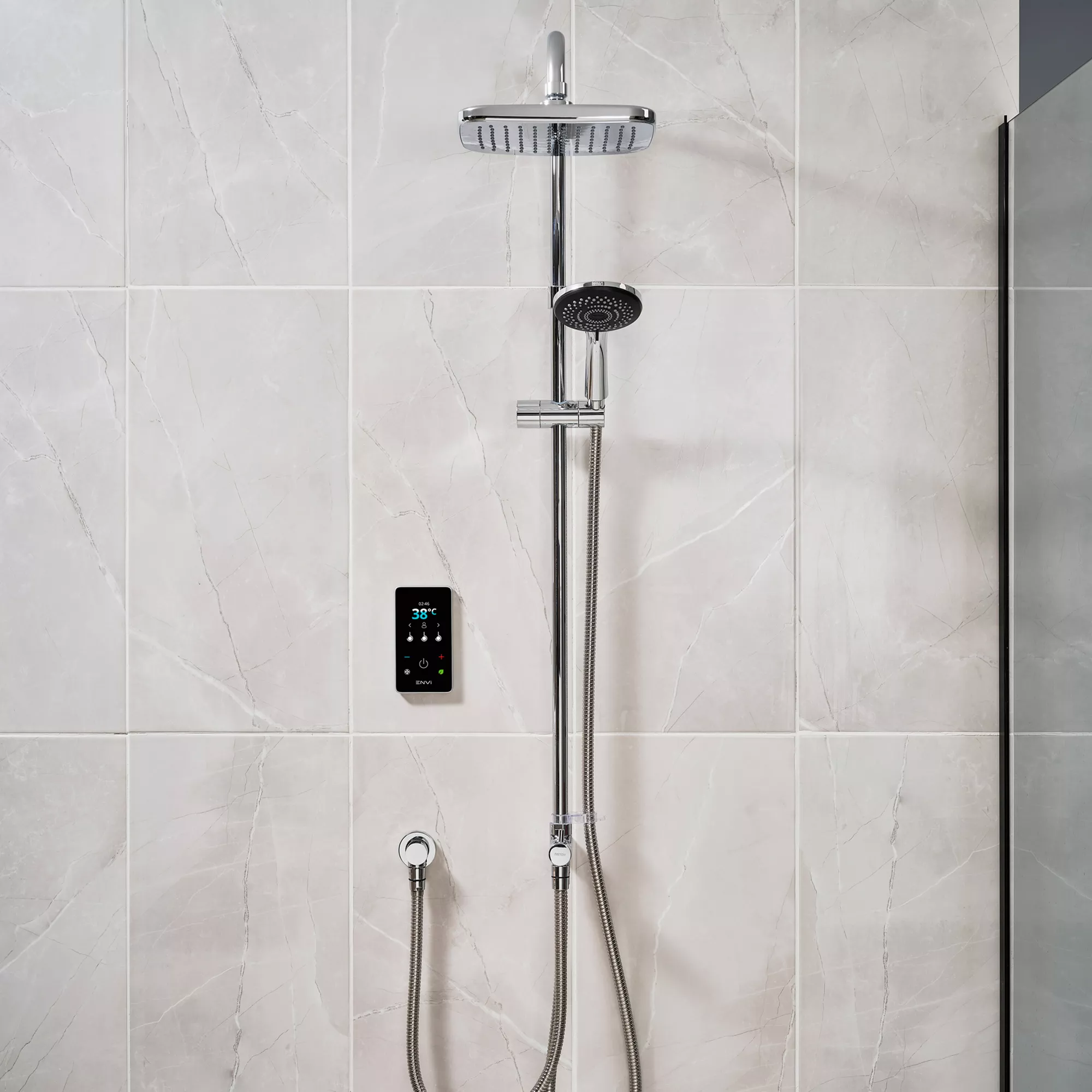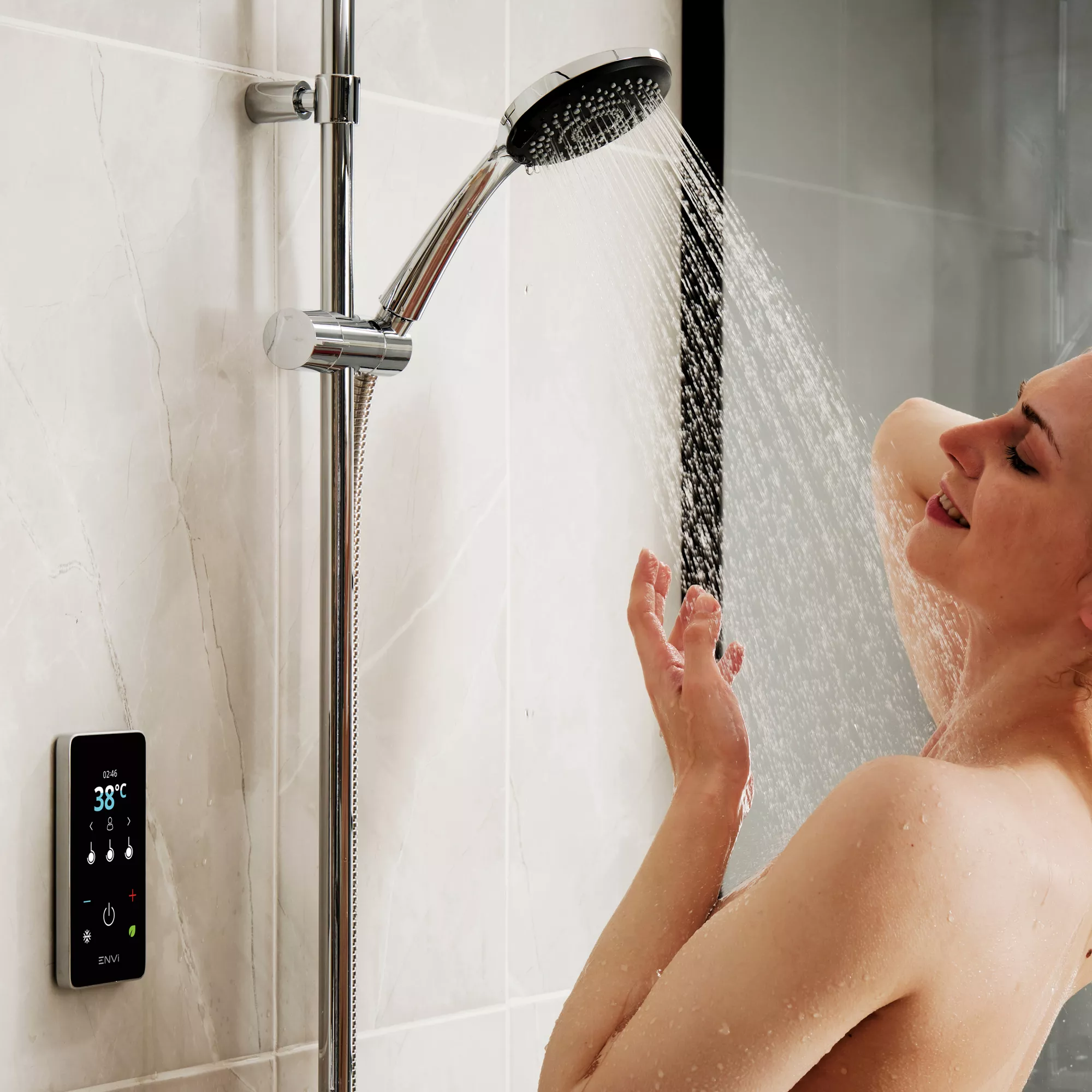 Discover the next generation of personalised electric showering with ENVi – choose from a pre-set programme or create your own shower profile, with six slots available, your whole family can save their own personal time and temperature settings. ENVi features full-colour digital display that provides feedback on individual shower use, including water and energy usage, plus cost info per shower. Not only is the ENVi range efficient and innovative its sleek, modern style is sure to upgrade your bathroom space, with multiple finishes and shower head types you are bound to find an ENVi that is suited to your home.