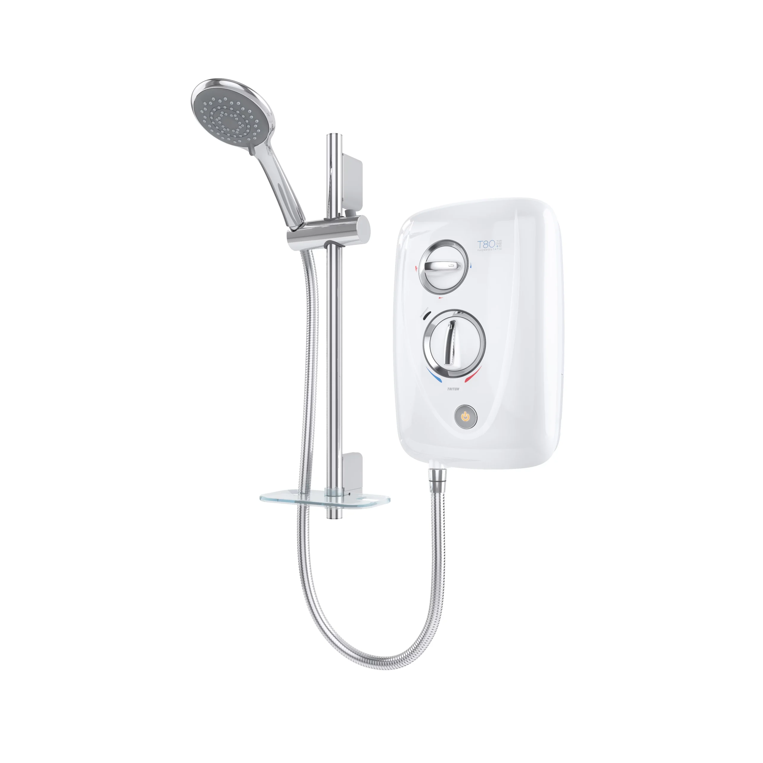 The T80 Easi-Fit+ Thermostatic Thermostatic Fast-Fit uses the Dura-Flowâ„¢ technology for a longer lasting shower, making it ideal for hard water areas. With all the installation benefits of the Easi-Ft but with precise thermostatic temperature control, this T80 is ideal for busy households where someone is always using water, whether flushing the toilet or running a tap. Whatever is happening, the T80 Easi-Fit+ Thermostatic Fast-Fit will maintain your desired showering temperature. *Please note that if selecting the 10.5kW rating for this model, you will require 10mm2 cabling. Please check existing cabling for compatibility.