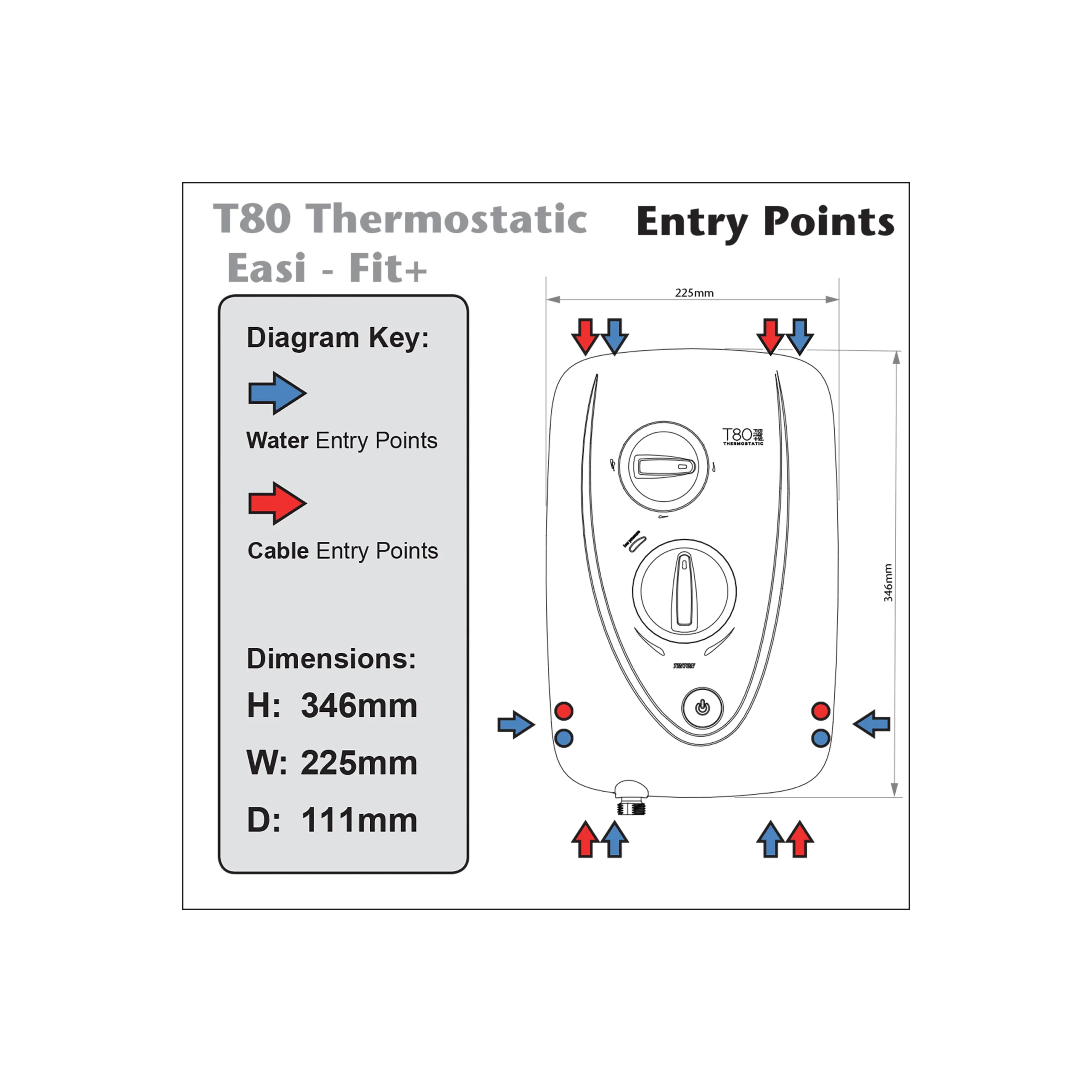 The T80 Easi-Fit+ Thermostatic Thermostatic Fast-Fit uses the Dura-Flowâ„¢ technology for a longer lasting shower, making it ideal for hard water areas. With all the installation benefits of the Easi-Ft but with precise thermostatic temperature control, this T80 is ideal for busy households where someone is always using water, whether flushing the toilet or running a tap. Whatever is happening, the T80 Easi-Fit+ Thermostatic Fast-Fit will maintain your desired showering temperature.